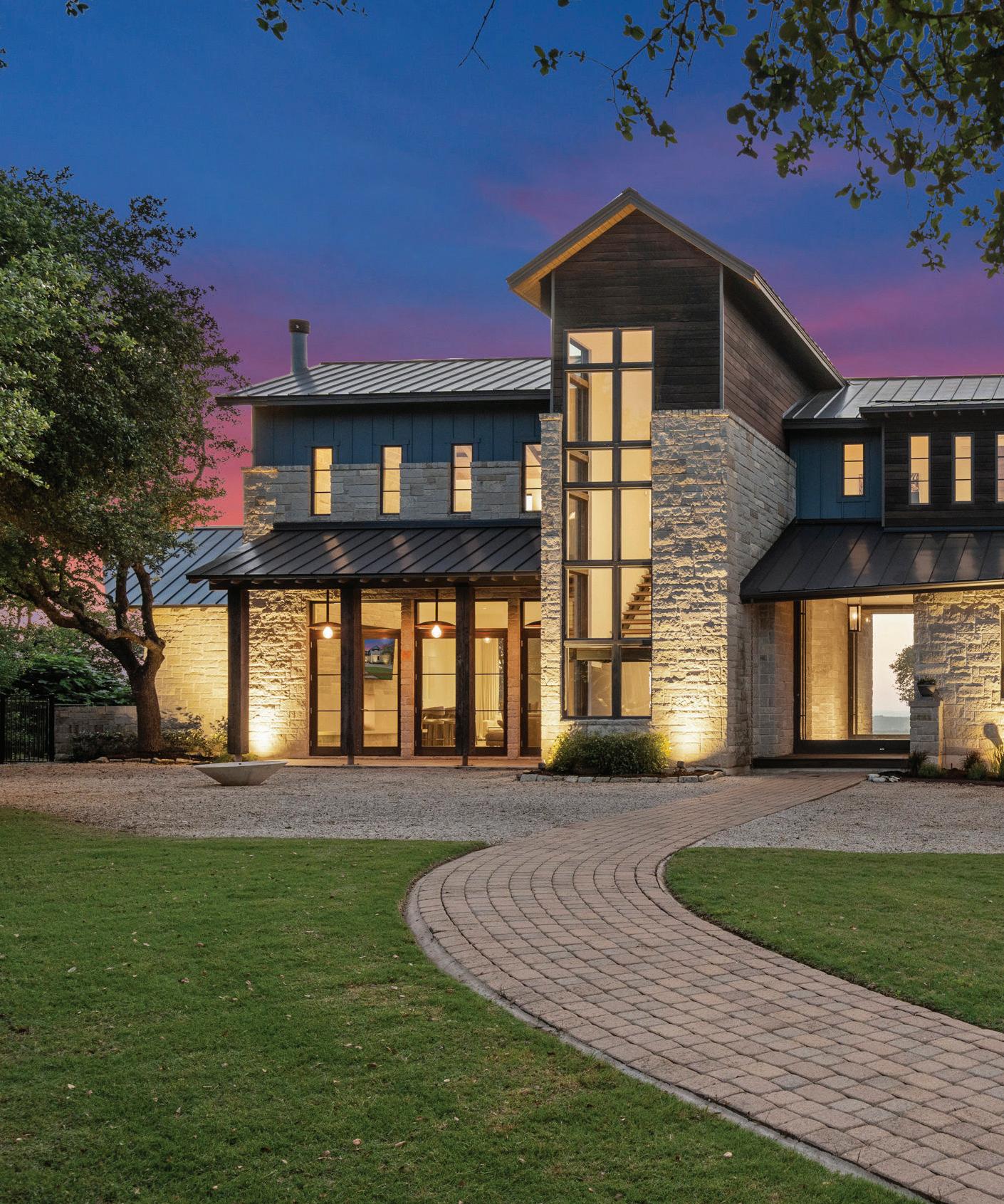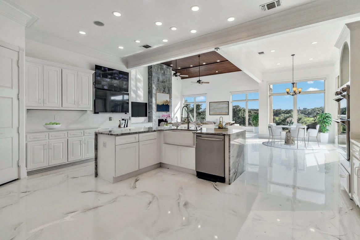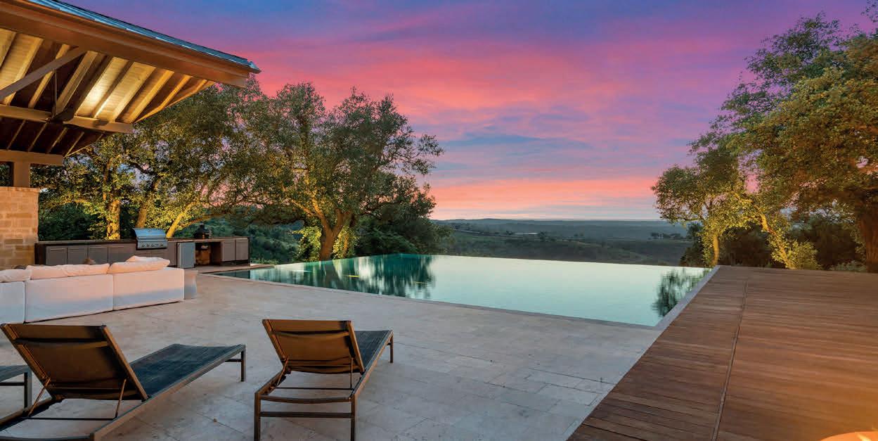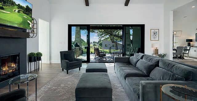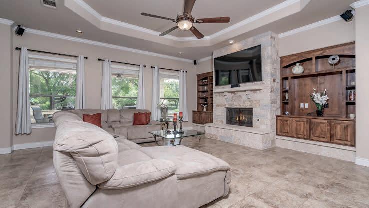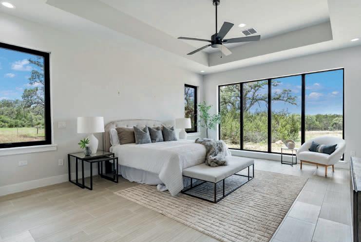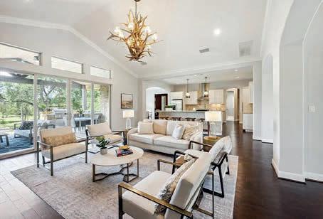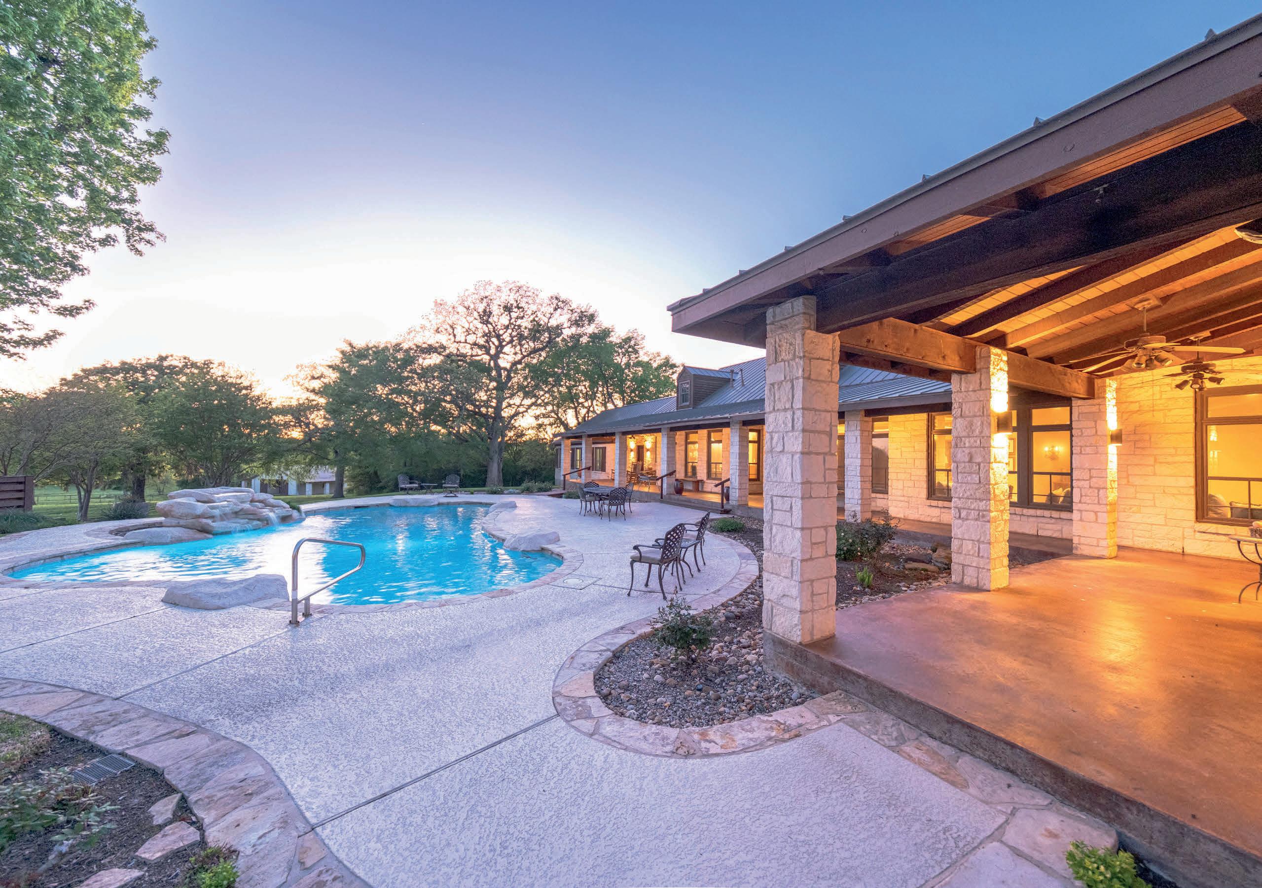 5 BEDS | 5.5 BATHS | 4,994 SQ FT | $2,495,000 | This newly constructed residence located in the upscale Clearwater Landing at The Legends community is the ultimate dream home for those who desire the finest design and craftsmanship. The Hill Country contemporary home features a bright and open floor plan, with wide plank White Oak hardwood floors and warm, sophisticated furnishings and décor. Upon entering, an impressive two-story foyer greets you, topped by a cascading chandelier and a curved staircase. The great room is adorned with fluted wall panels anchored by a linear fireplace, creating an elegant ambiance, further enhanced by the natural light streaming in from the 12-ft glass sliding doors. The gourmet kitchen and adjacent prep kitchen boast quartz countertops and top-of-the-line stainless steel appliances. The primary suite is an amenity-rich retreat equipped with a coffee bar, retractable projector screen, and a fireplace, with a show-stopping en-suite bath. The second-floor features four guest suites, a bonus prayer room, a workout room and state-of-the-art home theater. The indoor luxury extends outside to the living and dining spaces, where a fully equipped summer kitchen offers a gas grill, wood-fired pizza oven, wine refrigerator and dishwasher. Enjoy Lake LBJ access without paying waterfront prices, as your boat slip is waiting just one minute away at the Clearwater Marina. You don’t want to miss this breathtaking home!