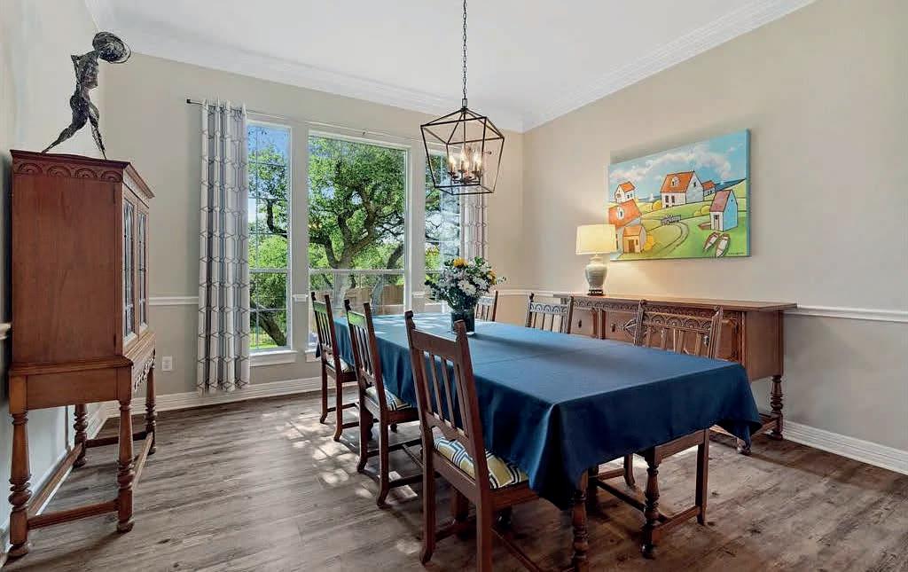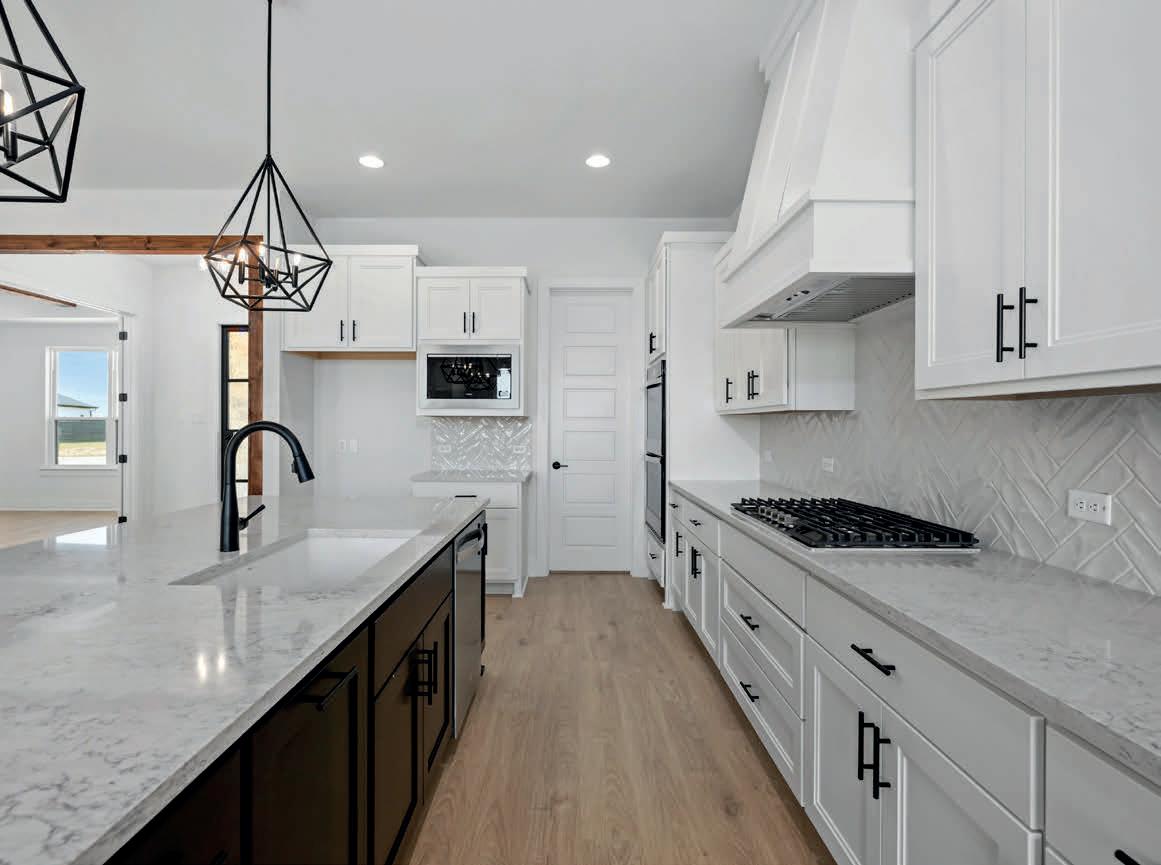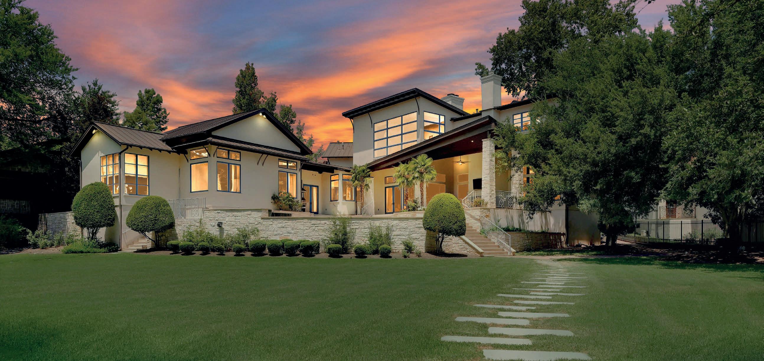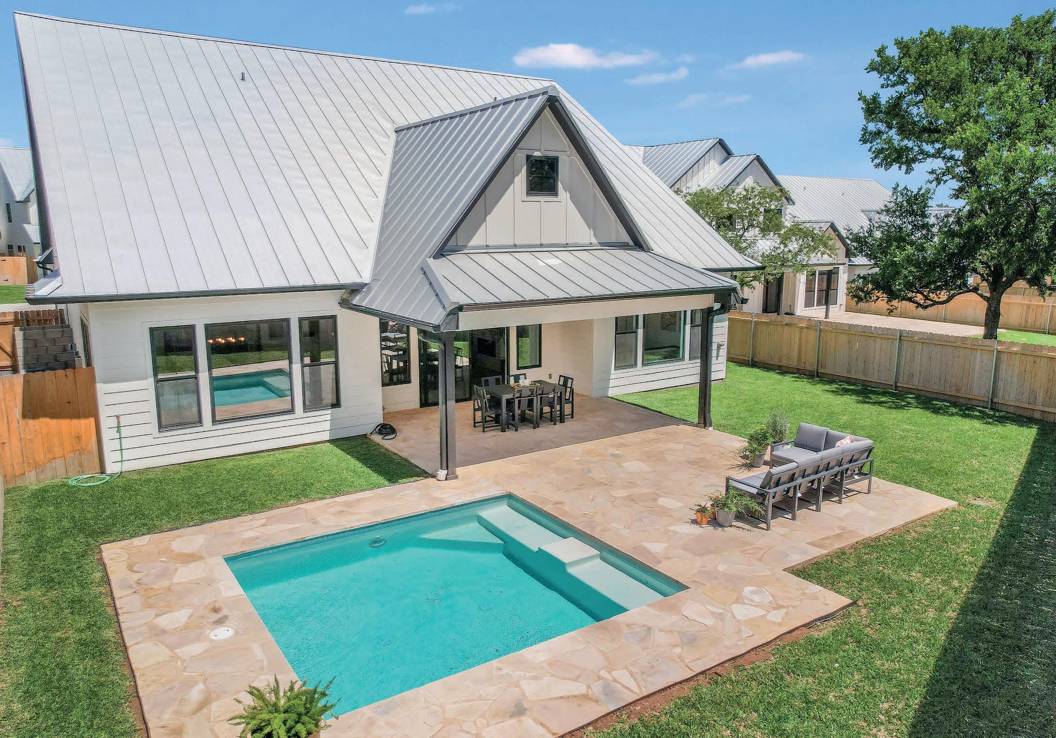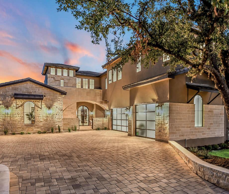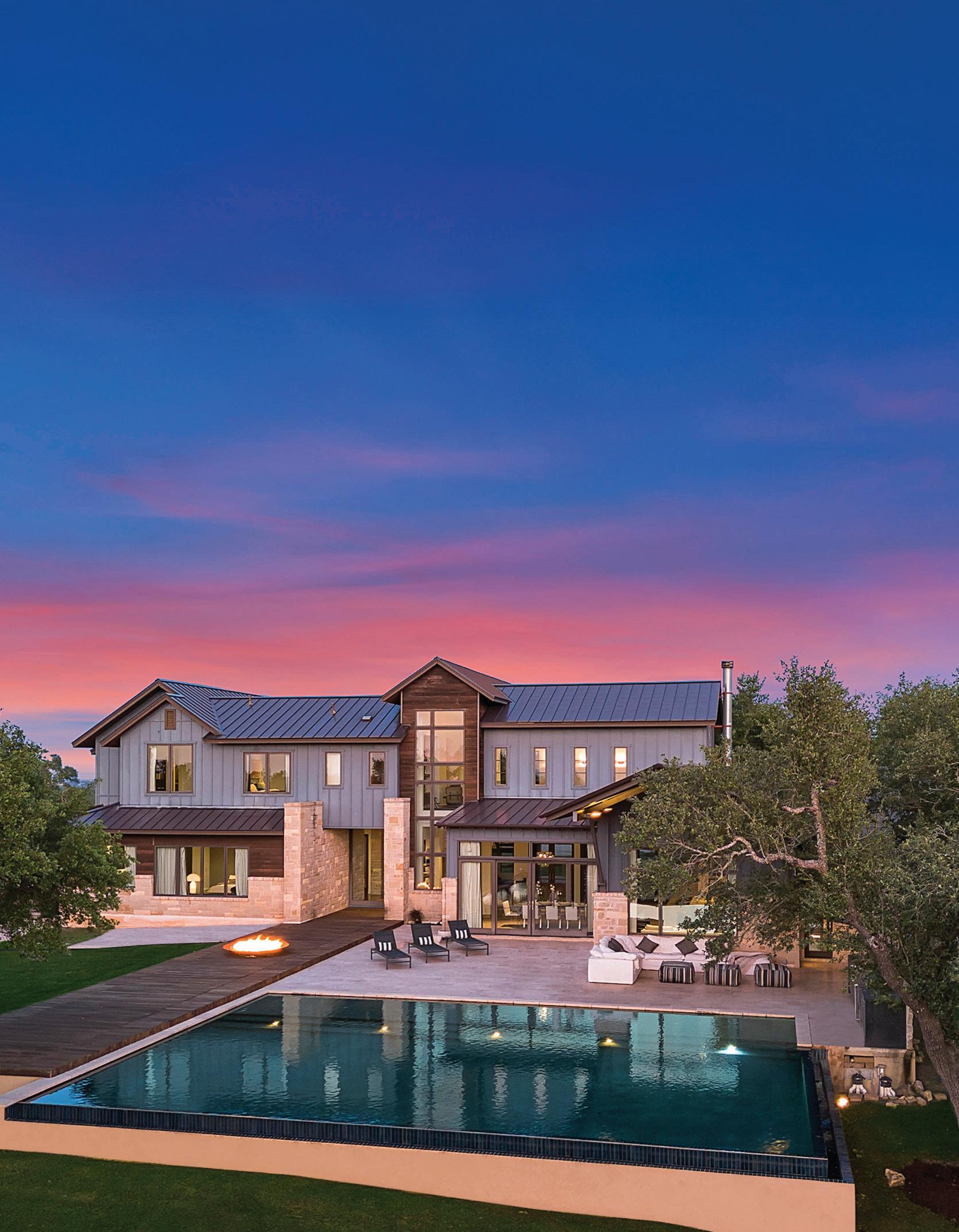 5 BEDS | 5.5 BATHS | 4,994 SQ FT | $2,495,000 | This newly constructed residence located in the upscale Clearwater Landing at The Legends community is the ultimate dream home for those who desire the finest design and craftsmanship. The Hill Country contemporary home features a bright and open floor plan, with wide plank White Oak hardwood floors and warm, sophisticated furnishings and décor. Upon entering, an impressive two-story foyer greets you, topped by a cascading chandelier and a curved staircase. The great room is adorned with fluted wall panels anchored by a linear fireplace, creating an elegant ambiance, further enhanced by the natural light streaming in from the 12-ft glass sliding doors. The gourmet kitchen and adjacent prep kitchen boast quartz countertops and top-of-the-line stainless steel appliances. The primary suite is an amenity-rich retreat equipped with a coffee bar, retractable projector screen, and a fireplace, with a show-stopping en-suite bath. The second-floor features four guest suites, a bonus prayer room, a workout room and state-of-the-art home theater. The indoor luxury extends outside to the living and dining spaces, where a fully equipped summer kitchen offers a gas grill, wood-fired pizza oven, wine refrigerator and dishwasher. Enjoy Lake LBJ access without paying waterfront prices, as your boat slip is waiting just one minute away at the Clearwater Marina. You don’t want to miss this breathtaking home!