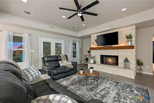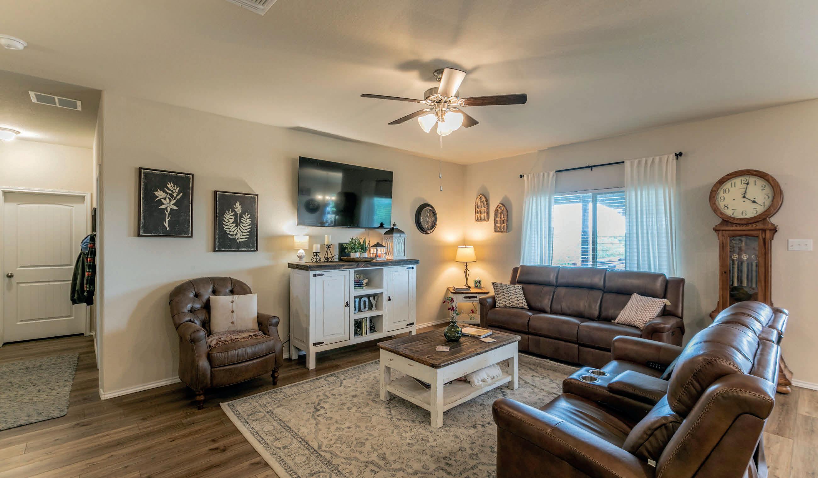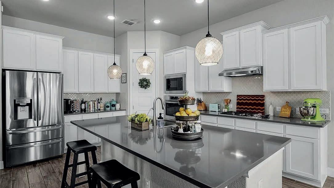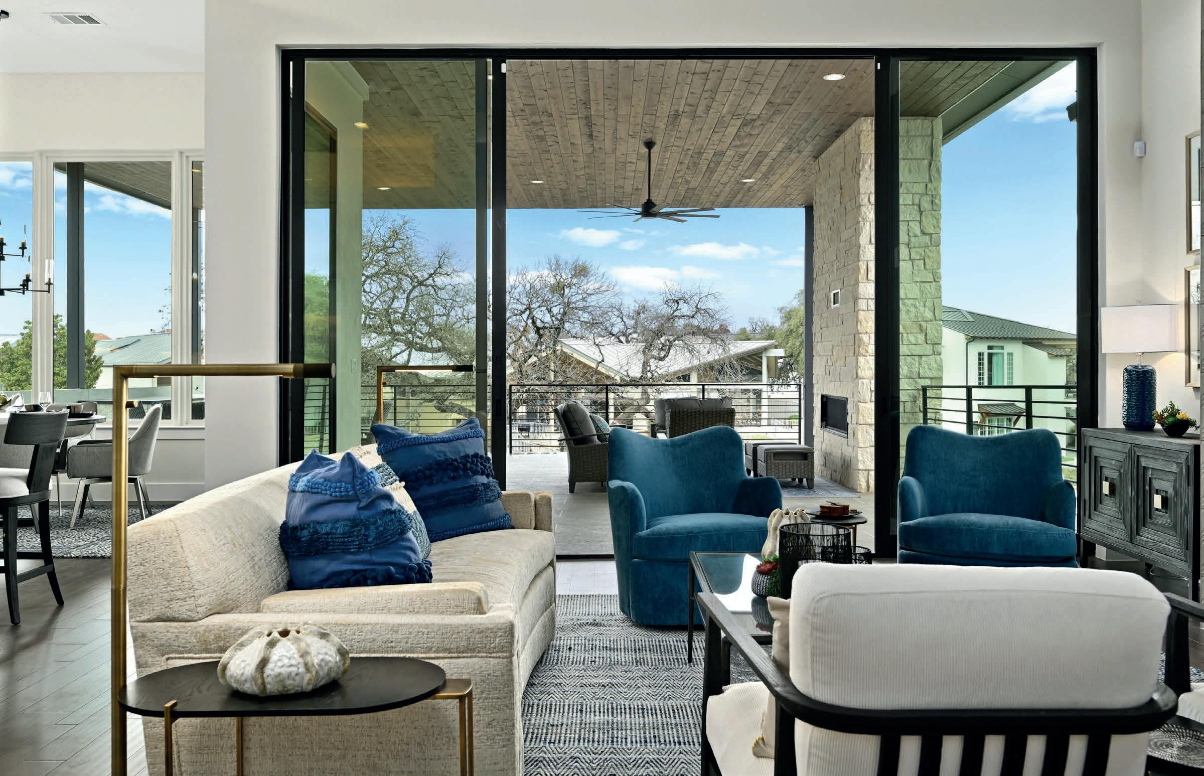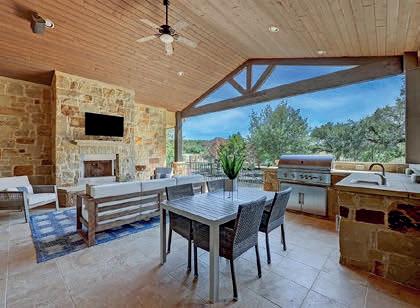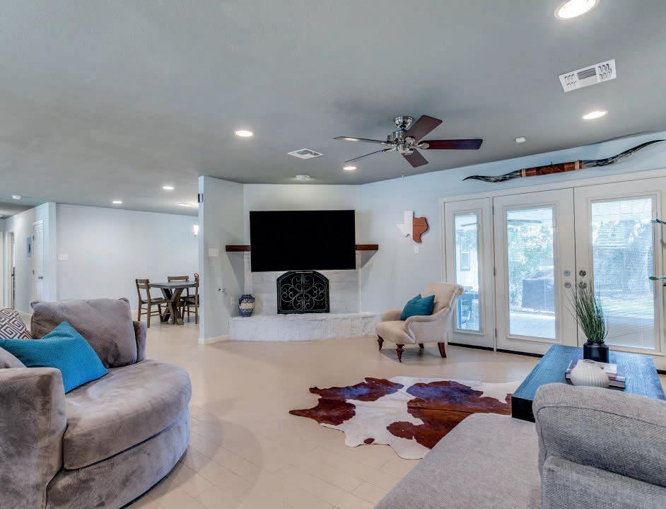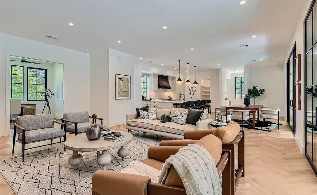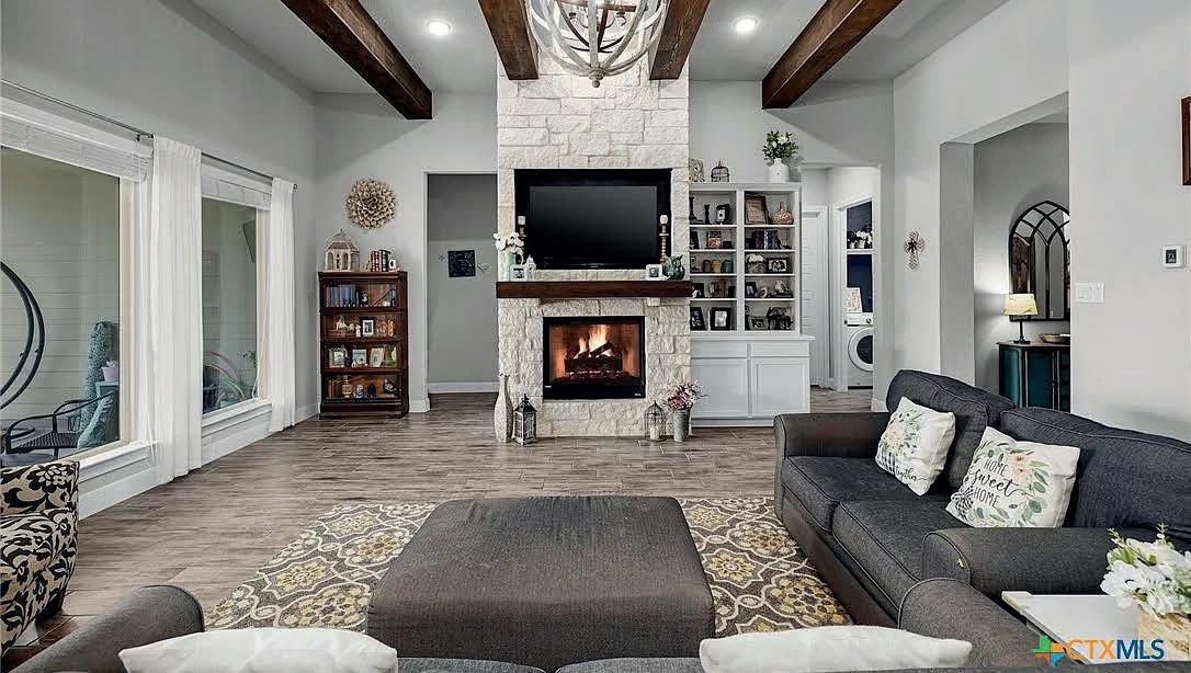 5 BEDS | 5.5 BATHS | 4,994 SQ FT | $2,495,000 | This newly constructed residence located in the upscale Clearwater Landing at The Legends community is the ultimate dream home for those who desire the finest design and craftsmanship. The Hill Country contemporary home features a bright and open floor plan, with wide plank White Oak hardwood floors and warm, sophisticated furnishings and décor. Upon entering, an impressive two-story foyer greets you, topped by a cascading chandelier and a curved staircase. The great room is adorned with fluted wall panels anchored by a linear fireplace, creating an elegant ambiance, further enhanced by the natural light streaming in from the 12-ft glass sliding doors. The gourmet kitchen and adjacent prep kitchen boast quartz countertops and top-of-the-line stainless steel appliances. The primary suite is an amenity-rich retreat equipped with a coffee bar, retractable projector screen, and a fireplace, with a show-stopping en-suite bath. The second-floor features four guest suites, a bonus prayer room, a workout room and state-of-the-art home theater. The indoor luxury extends outside to the living and dining spaces, where a fully equipped summer kitchen offers a gas grill, wood-fired pizza oven, wine refrigerator and dishwasher. Enjoy Lake LBJ access without paying waterfront prices, as your boat slip is waiting just one minute away at the Clearwater Marina. You don’t want to miss this breathtaking home!