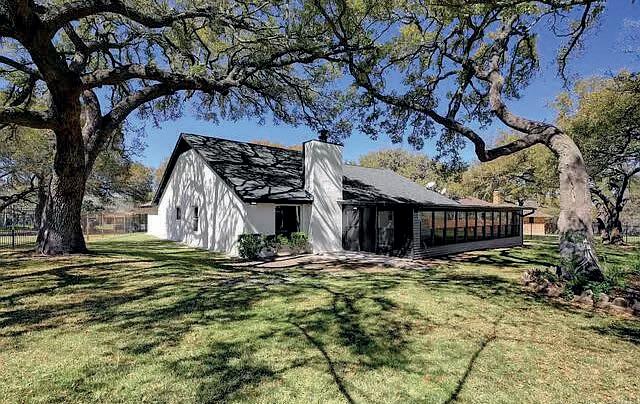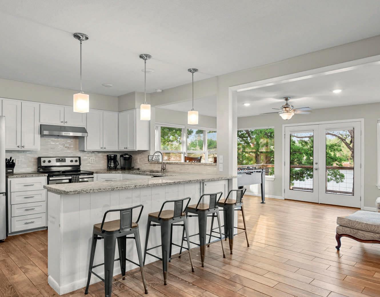 This gorgeous custom home is nestled amid the Texas Hill Country and within walking distance of the banks of Lake LBJ in Horseshoe Bay, Texas. Enter the property through the charming and private courtyard. Grace the entrance to 20 ft ceilings, with a the bright and airy open floor plan with large living, 2 separate dining areas, & an inviting wet bar, that is a hosts’ dream. Tile floors throughout the home lend to its easy care and low maintenance. The stylish kitchen is beautifully equipped with stainless steel appliances, granite countertops, and a plethora of cabinetry. The floor plan offers 3 bedrooms and 2 fully remodeled bathrooms.
