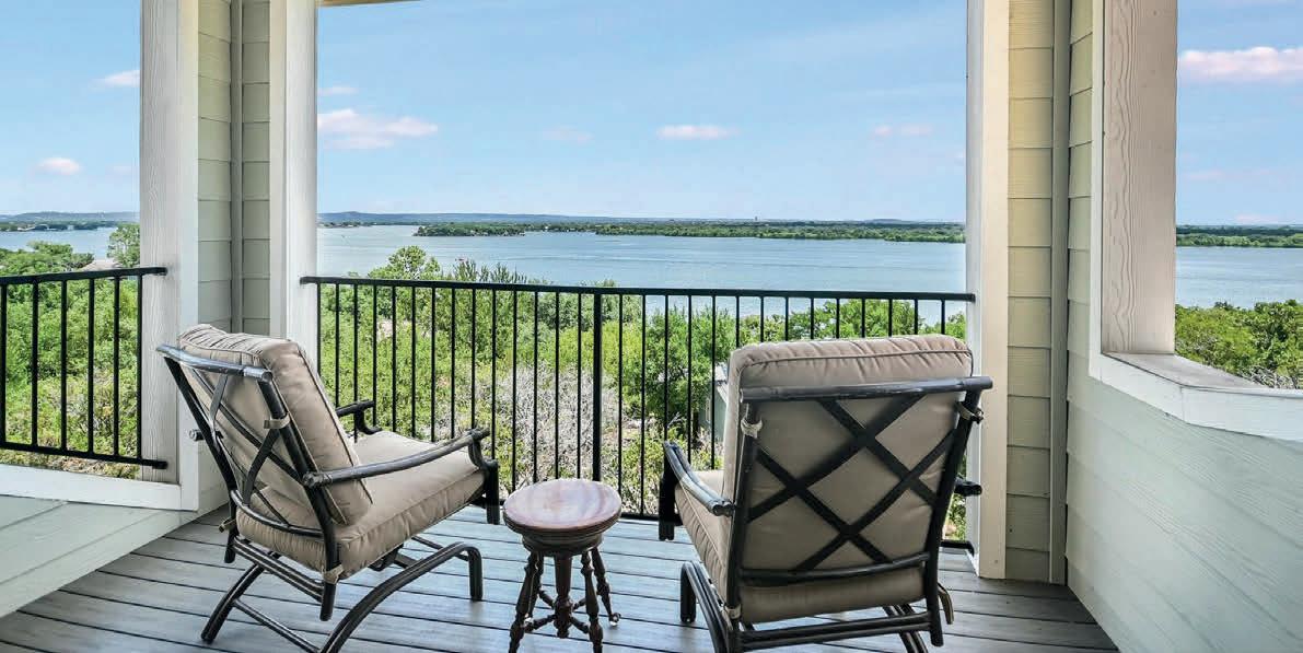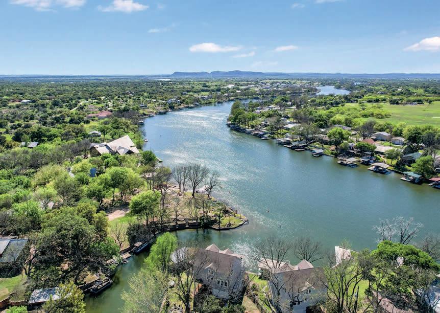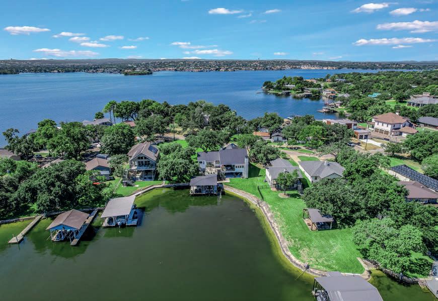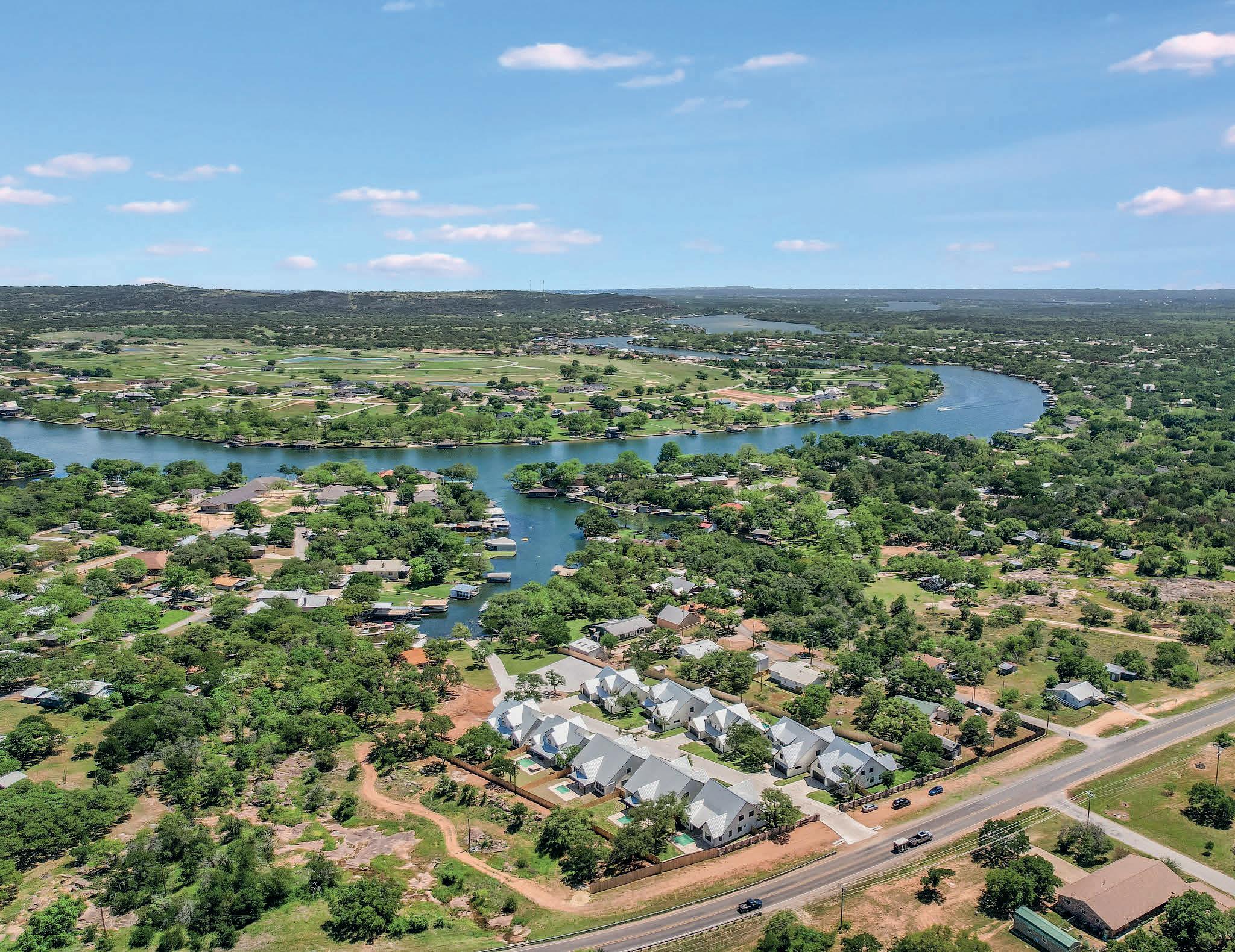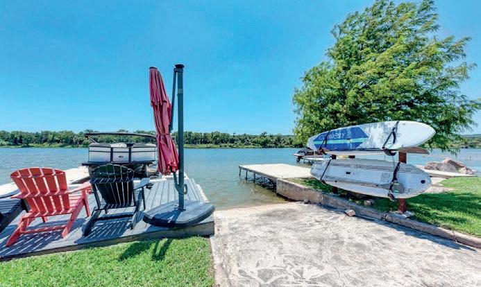 4 BEDS | 4 BATHS | 2,506 SQ FT | $1,765,000 | This Lake LBJ waterfront townhome offers a chance to be in the heart of Horseshoe Bay and within walking distance to the Horseshoe Bay Resort and its world-class amenities. (*Membership required to enjoy amenities). You could be enjoying fantastic southeast facing views of the open water from your patio by the summer! Inside, the main level is filled with natural light shining through a wall of glass doors and windows that frame the panoramic views. The open floor plan features dining and living areas which offer access to the 300 sq ft mainlevel patio overlooking the open waters of Lake LBJ – the perfect spot to catch the annual July 4th fireworks display surrounded by family & friends. The updated kitchen boasts stainless steel appliances and granite countertops. The main floor also boasts a spacious guest room and full bath. Two additional bedrooms are upstairs, including the primary suite, which opens to a terrace overlooking the lake where you can enjoy morning coffee. Travel downstairs to find access to the attached garage and a large bedroom with a seating area, a walk-in closet and a full bath. Here you can access the lake-level patio, the boat slip, and the PWC lift, or you can use the outdoor stairs to join friends and family on the main-level patio.