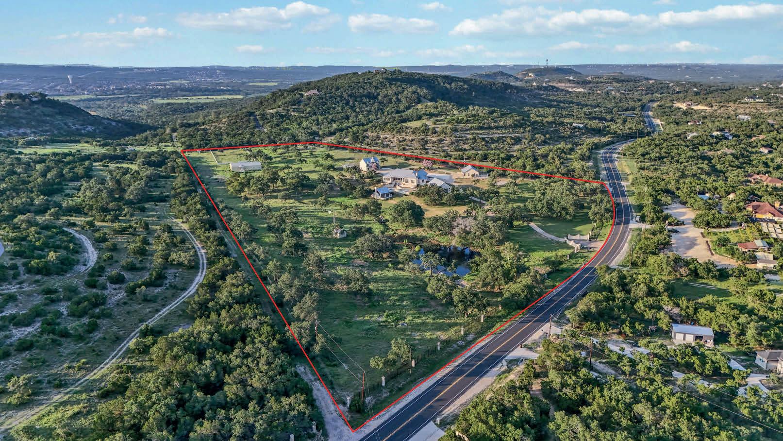 16.7 acres of breathtaking Hill Country landscape. Boasting a total of 9,339 sqft of living space, the property comprises a stunning onestory main residence, 2 guest houses, a detached office, and an array of outdoor amenities that make this estate a rare find.