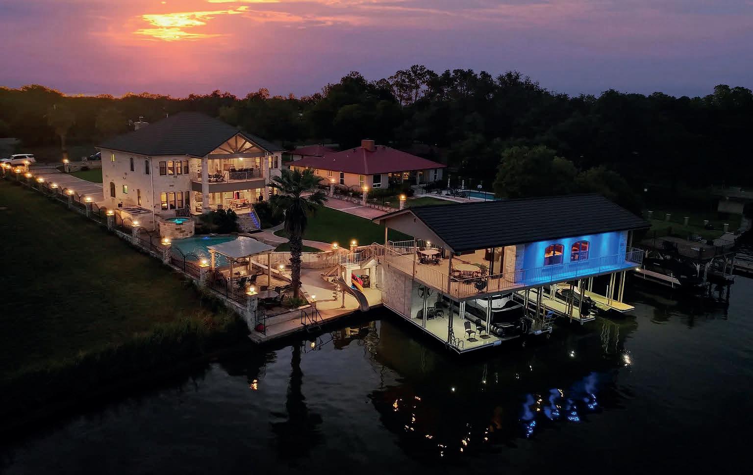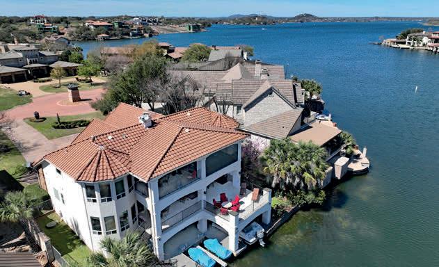BEDS | 5 FULL BATHS 3 HALF BATHS | 5,368 SQ FT | $4,850,000 | Welcome to 315 Matern Ct., an extraordinary waterfront estate located in the exclusive gated community of Matern Island, just seconds from open water. This newly constructed property offers the epitome of luxury living on 76’ of Lake LBJ waterfront, boasting breathtaking lake views from almost every room. With multiple indoor and outdoor living spaces, 3-car garage, elevator, and guest quarters, the home has ample amenities and accommodations for hosting. The great room opens to the family room adorned with a floor-to-ceiling fireplace and 10-foot glass stacking doors, providing ease of indoor/outdoor living and entertaining. The stunning kitchen features a quartzite waterfall island beneath sparkling pendant lighting. The main level primary suite features patio access, a spa-like en-suite bath, and a large walk-in closet. Upstairs, a wet bar provides convenience while entertaining guests in the game room or media room. Step outside, where multiple levels of outdoor living spaces take advantage of the home’s elevation and provide the perfect setting for enjoying the stunning views of Lake LBJ and the hill country beyond. Resort-style amenities include an outdoor kitchen, a private pool and spa, green space for relaxing in the sun, a lakeside fire pit, and a private boat slip for easy access to Lake LBJ.