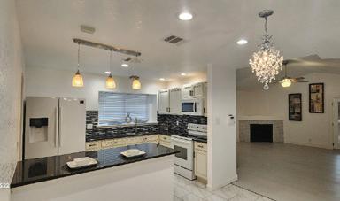 A blast from the past with modern upgrades. This home features three bedrooms and two full baths with an open floor plan. Come see the remodeled kitchen and bathrooms as well as the flooring in the living room, kitchen and bedrooms. Large backyard with lots of room to play and to grow. Within walking distance to the San Antonio Spurs arena and to the Freeman Coliseum for the annual Stock Show and Rodeo. Easy access to major highways and to everything.