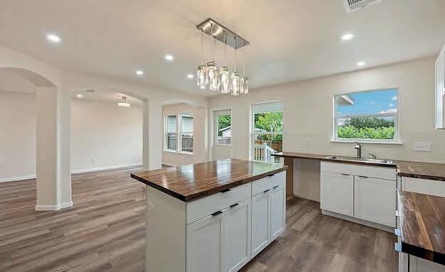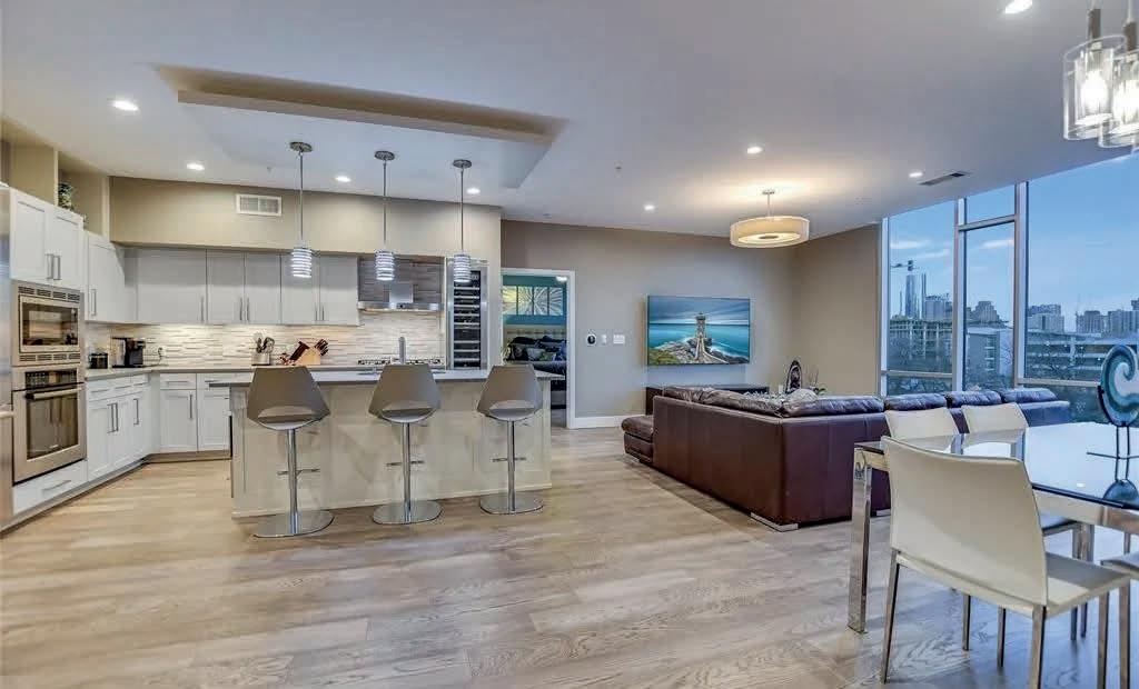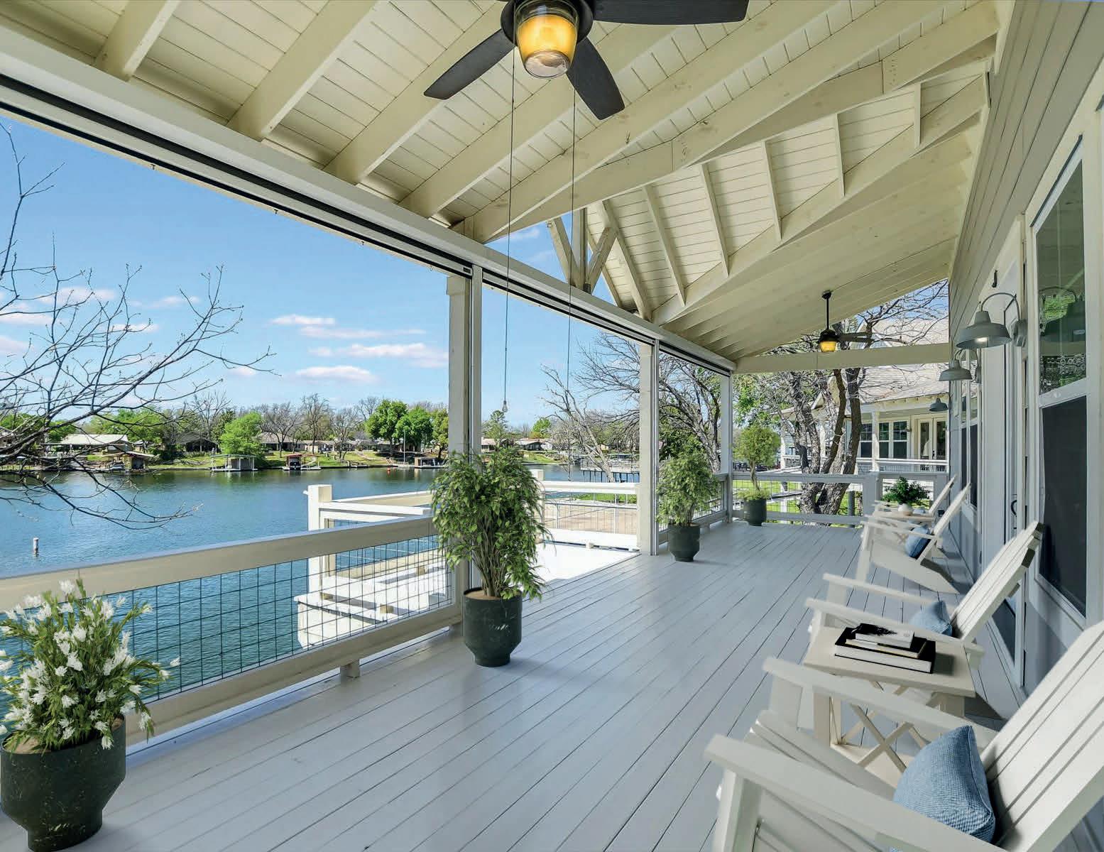 This beautiful, custom waterfront home is nestled perfectly on Inks Lake. Featuring 14-ft ceilings in the main areas, luxury vinyl planking throughout, Uttermost light fixtures, and tons of storage, this home was built with every luxury in mind. The dreamy chef’s kitchen is perfect for entertaining!