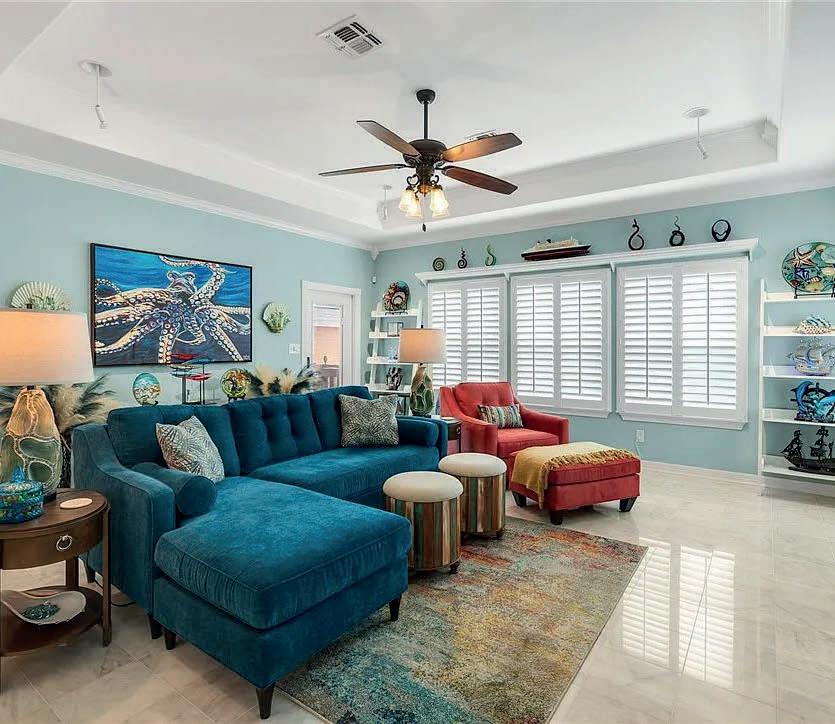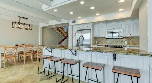 4 BEDS • 4 BATHS • 2,481 SQ FT • $1,749,000 Immaculate 4 custombuilt home in Palmilla Beach Resort & Golf Community features a bright and airy floor plan. The 1st floor includes 3 bedrooms, 2 baths, and a living/ bunk room. The 2nd floor boasts a primary bedroom with a spa-like ensuite, a chef’s kitchen, and a light-filled living room. The home, offered fully furnished, serves as a high-income vacation rental or full-time residence. Outdoor spaces include covered decks, a landscaped yard, and a personal golf green. Residents enjoy access to community amenities like pools, a redesigned golf course, and a beach boardwalk.