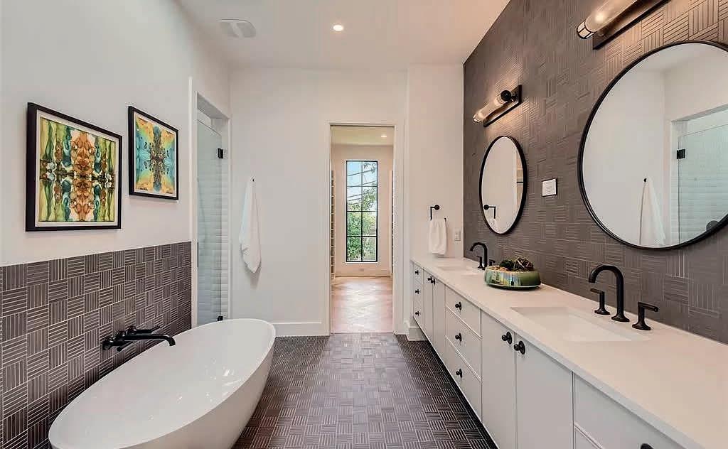 The primary suite, located on the lower level, features a Victoria & Albert soaking tub, large walk-in glass shower with multiple shower heads, dual square sink floating vanity with Hansgrohe fixtures, and sensor bidet. A floating staircase with bracketless glass, a true architectural delight draws you upstairs. There three additional bedrooms each have access to full baths and generous walk-in closets. The flexible bonus nook can serve as an office, play space, yoga/meditation area, or Peloton zone, catering to your unique modern lifestyle.