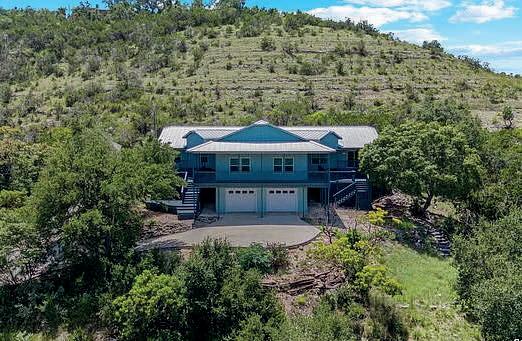 Luxurious Retreat Overlooking Lake Marble Falls Awaits You! Nestled on a sprawling 8.52-acre estate, this 3,167 square foot custom home is a masterpiece of design & privacy, offering unparalleled views of Lake Marble Falls, the Colorado River basin, & charming downtown Marble Falls. Designed for those who seek serenity and privacy, this property is ingeniously integrated into the hillside, providing a secluded oasis that is truly one-of-a-kind. As you enter this magnificent residence, you are greeted by an atmosphere of sophisticated luxury. The upper level serves as the heart of the home, featuring the exquisite primary suite, a formal dining room, a splendid breakfast nook, and a large open living area complete with a cozy stone fireplace.
