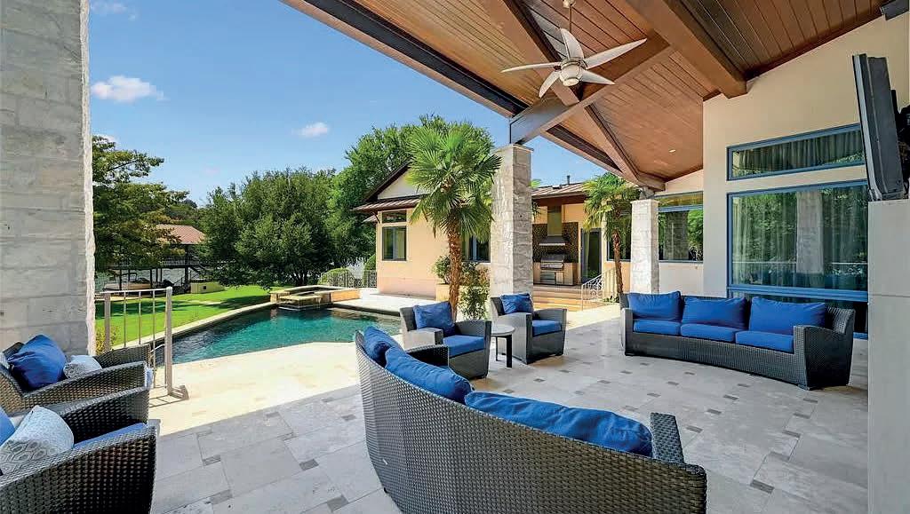 Welcome to your dream oasis! Nestled in a prestigious gated community, this custom-built luxury home sits on 5 serene acres, offering unparalleled privacy and stunning views of Lake Travis and the Texas Hill Country. Designed for the discerning homeowner, this exquisite residence blends opulent living with comfort and functionality. Step into the heart of the home—a chef’s delight kitchen, fully equipped with top-of-the-line appliances, two expansive islands, and elegant finishes, perfect for both intimate family meals and grand entertaining. Adjacent to the kitchen, discover the inviting sunroom, where you can enjoy your morning coffee bathed in natural light while soaking in the breathtaking vistas. The main suite is a private sanctuary, featuring a spacious bedroom with panoramic views, a luxurious bathroom complete with a separate walkin shower, and a soaking tub designed for ultimate relaxation.