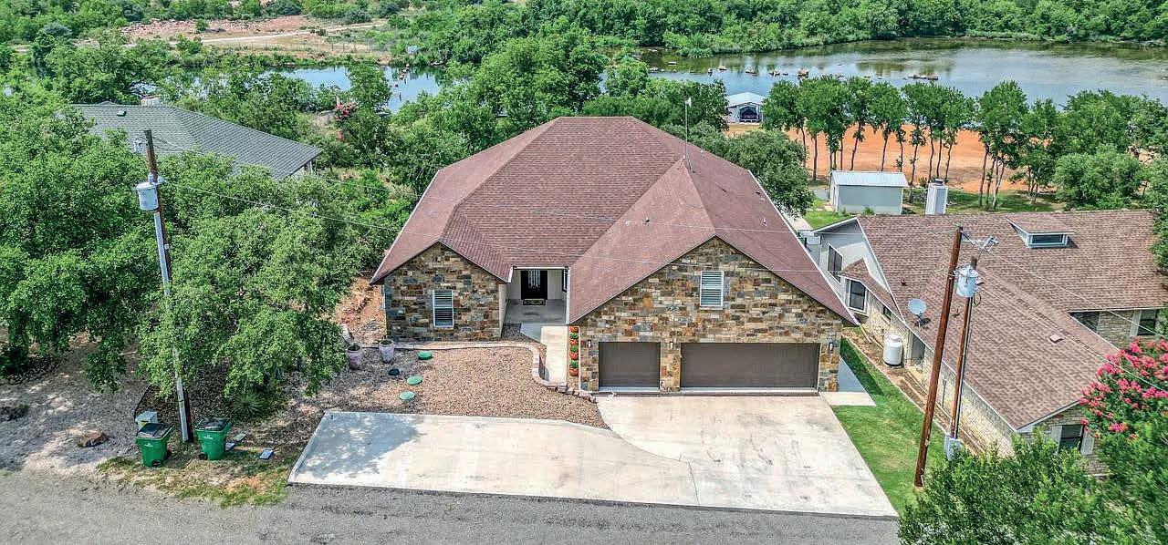3 BEDS | 4.5 BATHS | 4,422 SQ FT | $1,795,000 | Introducing an incredible off-water home located in the serene Lake LBJ community of Blue Lake. This two-story home spans over 4, 400 sq ft and includes three bedrooms, 4.5 baths, and numerous indoor and outdoor living spaces ideal for hosting visiting family and friends. Upon entering, you are greeted with panoramic views of Lake LBJ and the picturesque hill country. The living area features a soaring, beamed ceiling, a gas fireplace flanked by built-in cabinetry, and large sliding glass doors that open up to a covered patio, complete with an outdoor kitchen. The breakfast area offers stunning lake views, while the gourmet kitchen boasts a large island with ample storage, a breakfast bar, granite countertops, and stainless steel appliances. The main level primary suite provides a relaxing escape with lake views and access to a private patio. The en-suite bath includes a double vanity, walk-in shower, separate tub, and a sizable walk-in closet. Two additional guest suites, a full bath, and a spacious family room with a private balcony complete this thoughtfully designed floor plan. Take your boat out on Lake LBJ then park in your rented boat slip! This family home is a superb investment in an exceptional location, offering the opportunity to enjoy lake living without the burden of lakefront taxes.