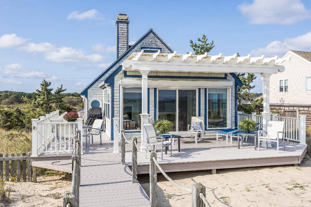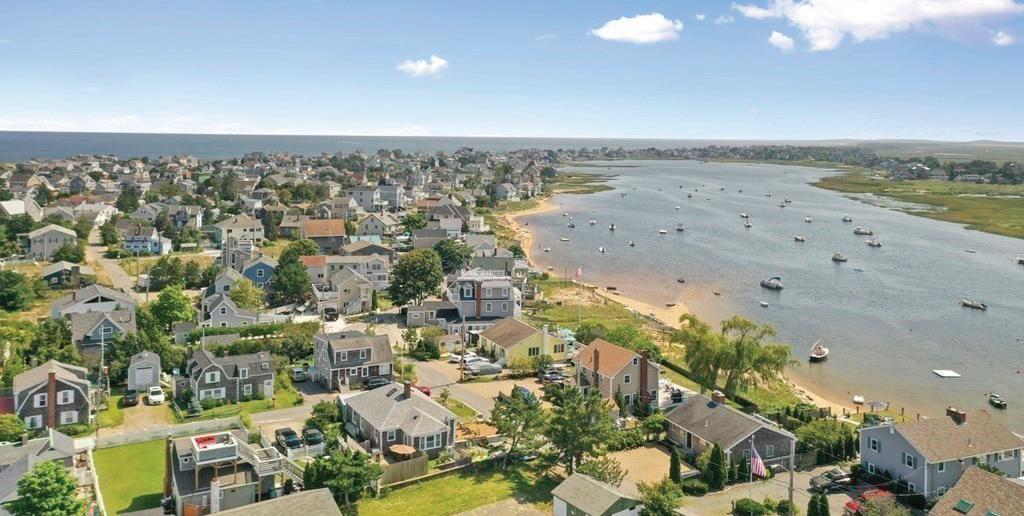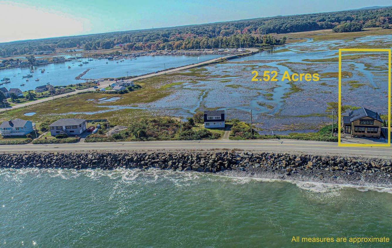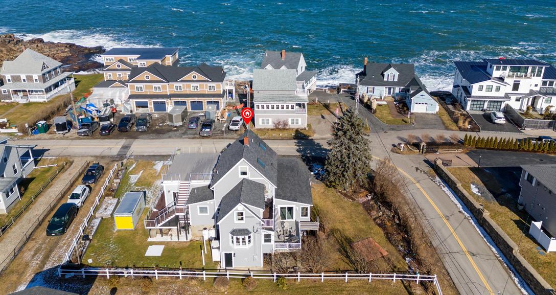 Long Beach Rockport steps to footbridge with open marsh and ocean views. Stunning sunrises over the Atlantic Ocean, views of the Twin Lights, and the moon rising. Wildlife abounds on the marsh as the tides come in and ebb. The photo depicts an exceptionally high tide in 2024. This newly designed home has recently been renovated to be weather-tight, with electrical and plumbed systems, wallboard, and some original oak flooring awaiting the new owner to finish per their specifications of cabinetry, flooring, appliances, fixtures, and completion.