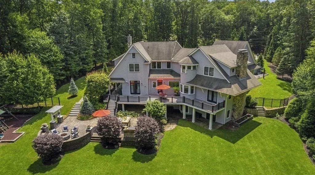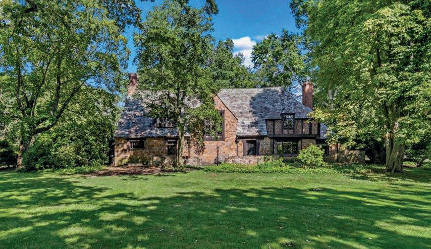 Setback, along this distinctive section of Ridge Road, minutes to New Haven, on a corner acre property, is this Classic 1930’s brick stone, slate roof Tudor. Beautiful, beamed ceiling Living Room with oversize fireplace and formal Dining Room both with random width oak pegged floors, plus the study/office have direct access to the private, partially covered bluestone patio and landscaped grounds. Spacious kitchen with stainless steel counters with a separate breakfast room as well as a butler’s pantry (15’x7’). An adjacent paneled family room with built-in bookcases and fireplace is in a perfect central location. An elegant turned staircase with a large triple window, with a transom above it, floods the second-floor landing with western light. Large primary bedroom suite with bath has windows on three sides. There are an additional four/five second floor bedrooms and three bathrooms. One of these is a two-room suite with bath that one can also access from a back staircase. Perfect for an in-law suite or for an au- pair. 90 minutes to NYC!