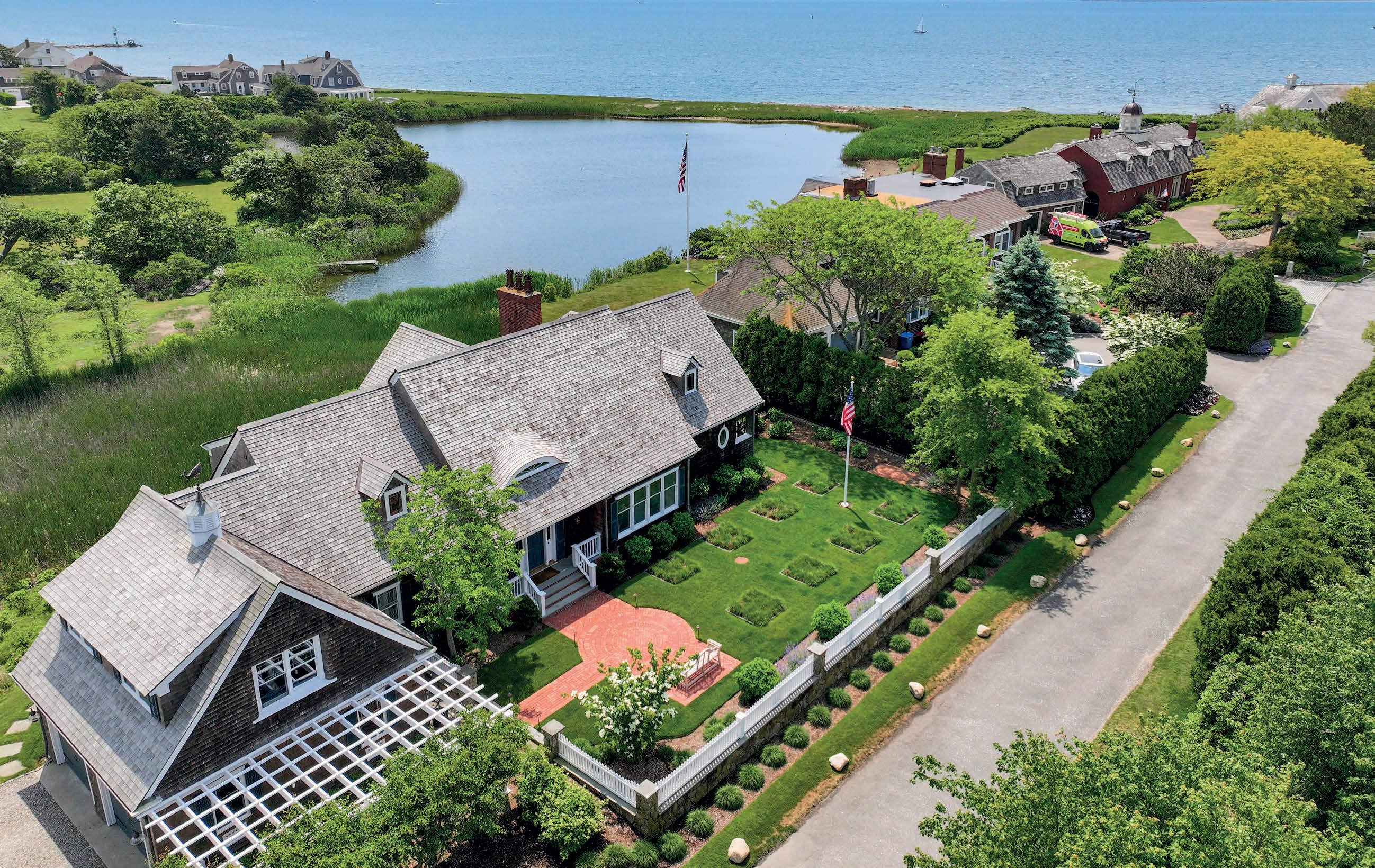 This remarkable shingle style home, designed by Shope Reno Wharton Associates, balances sophistication with a warm and inviting atmosphere. The outdoor areas of the property are impressive. With a beautifully landscaped yard and a covered back porch with adjoining patio, one can appreciate the refreshing breezes and take in a sweet view of Mackerel Cove. The property's private lot ensures peace and tranquility. The oval entryway showcases exquisite craftsmanship and sets the tone for the rest of the property. The well-designed first level features a living room with fireplace, formal dining room that seamlessly connects to the gourmet kitchen, a half bath and ample closet space. There are three bedrooms on the second floor, including the primary en suite. A standout feature of this home is the custom wood-crafted den, which could serve as a fourth bedroom or a cozy workspace. 4BD/3.5BA