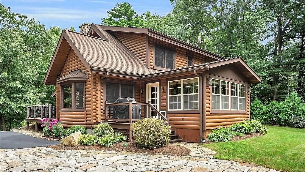 Discover the perfect blend of rustic charm and modern luxury in this custom-built Barna Log home! High-quality materials and craftsmanship throughout entire home. It is situated on 1.87 acres of beautifully landscaped land. Some of this majestic home’s features are: custom kitchen - new granite countertops and granite new island to match, dry tiles on the backsplash, exposed ceiling and all new high-end appliances, slate tile flooring. Spacious open floor plan leads in to your large living room with a custom-built post beam fireplace (coming from an old farm in Petersham) and a custom red wood bourbon cabinet with wine refrigerator. Main bedroom upstairs features huge walk-in California closet, a custom bathroom with heated floors, hickory vanity with copper sinks and ceramic tiling in the shower. Outside you’ll find a flagstone patio and a log sided 2 car garage (24x32) to match the home. The property includes a Generac whole-house 11KW generator and irrigation system covering both the front and back yards.