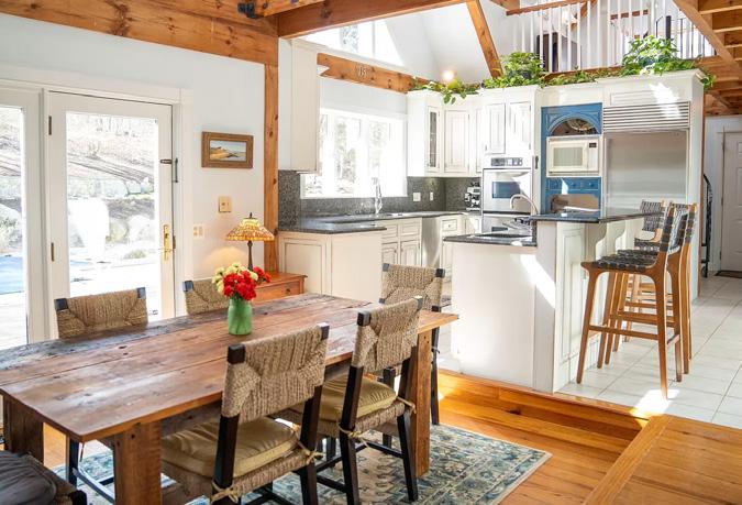 Nestled in a serene landscape, this charming log cabin offers the perfect blend of rustic charm and modern comfort. The open floor plan connects the cozy living room, with wood-burning stove, to the fully equipped eat-in kitchen. Each bedroom offers a peaceful sanctuary, with the secondfloor bedroom suite boasting a sitting/yoga area, en-suite bathroom, and secondary egress. Two first-floor bedrooms share a well-appointed second bathroom, ensuring comfort for family and guests. Outside, a wraparound porch welcomes morning coffee and evening sunsets. Outdoor hot-water shower adds a touch of luxury. Fiber optic internet, smart thermostats, exquisite upkeep and a dry basement round out the quality of this beautiful retreat. Strong rental history, fully furnished with high-quality items and remote-access alarm system. Turn-key property management also available. Becket Beach on Center Pond is a short drive (with resident-only permit), alongside October Mountain State Forest, ski mountains, Tanglewood and Jacob’s Pillow. This pristine cabin is a rare find.