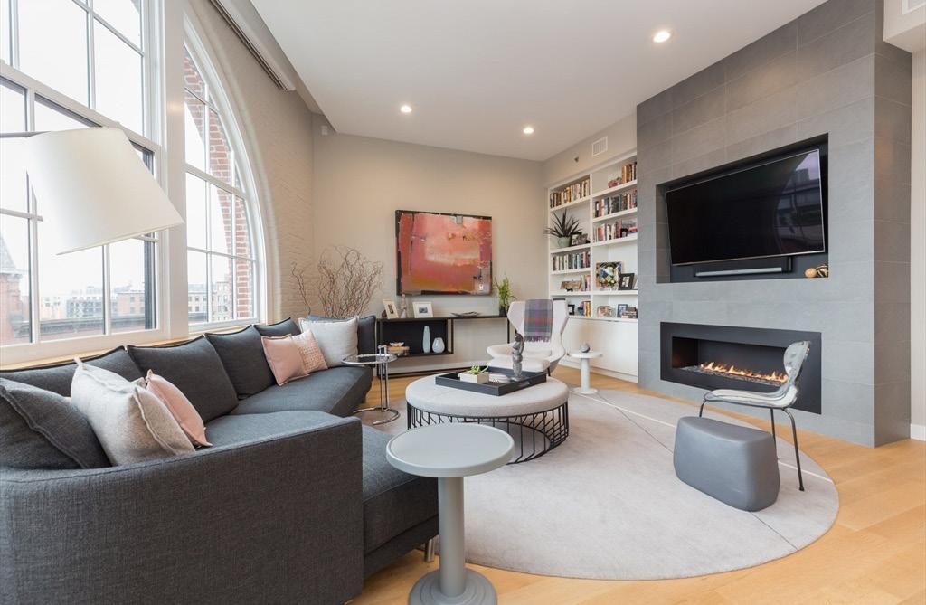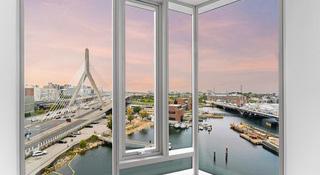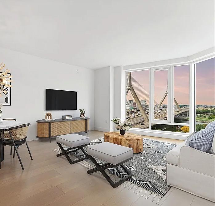 Rarely Available Historic Waterfront Condo in Chelsea – Don’t miss this beautifully spacious 2-bedroom, 2-bathroom home. Both bedrooms feature large closets, while elegant hardwood floors flow throughout the unit. The main living area boasts an open-concept horseshoe layout, seamlessly connecting the kitchen, dining, and living spaces. The modern kitchen is equipped with sleek white cabinets, granite countertops, a gas stove, and a convenient kitchen island. Exposed brick walls add a charming touch to both the dining and living areas. A standout feature in the living room is the antique Washington “Olympic” model wood-burning furnace, creating a cozy focal point. Both the living and dining areas offer sliding doors that open to a private, south-facing balcony, showcasing breathtaking views of the Boston skyline and harbor. The double windows and sliding doors ensure excellent soundproofing and energy efficiency. This unit includes 1 assigned off-street parking space. Conveniently situated within walking distance of the shops at Chelsea Square and near the MBTA 111, 116, and 117 bus routes.
