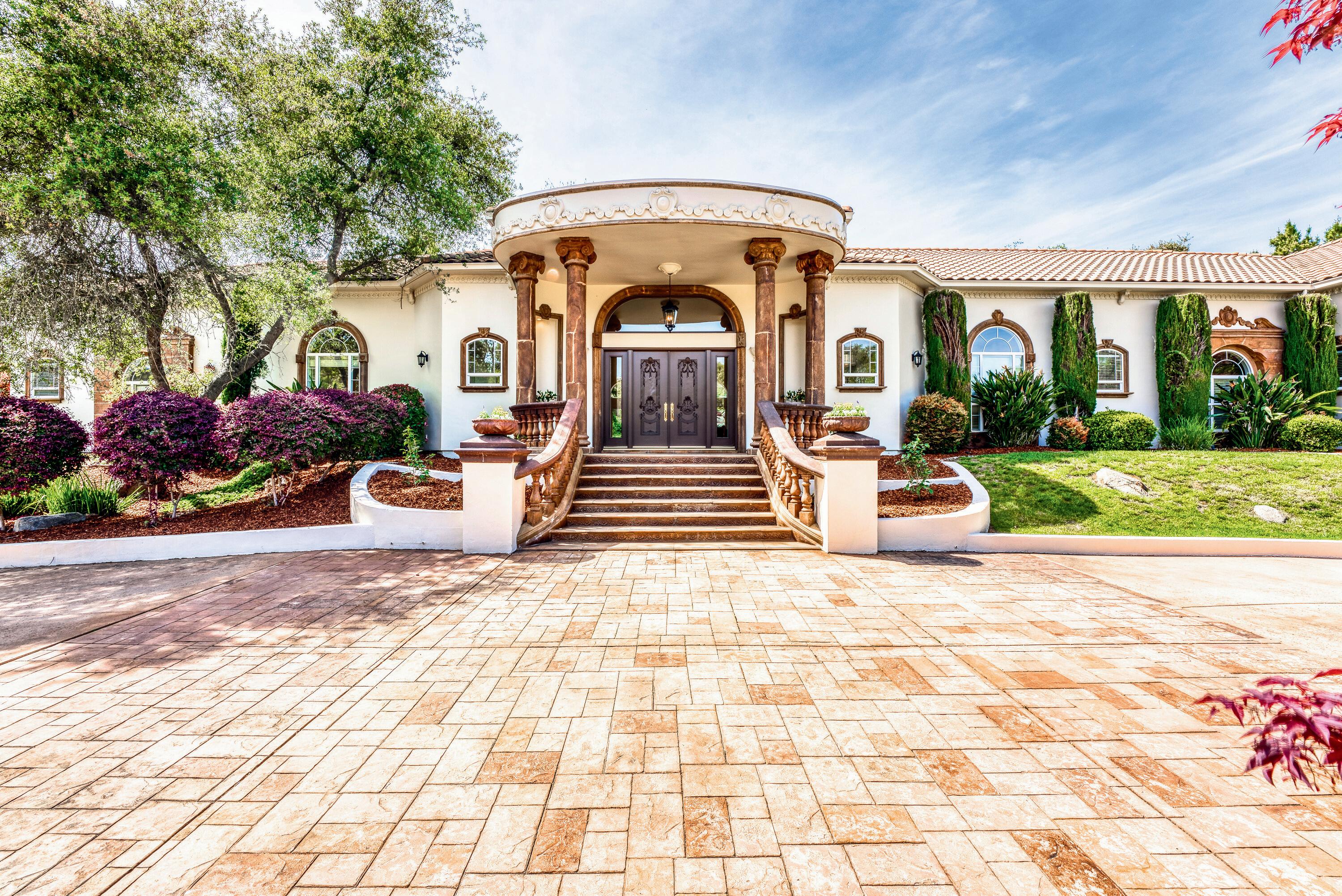 A remarkable 5-bedroom, 5-bathroom, Mediterranean Villa on a breathtaking hilltop parcel! Over 6,300 SF of luxury living with over 5,000 SF on one level! Stunning travertine & cherry wood floors with in-laid Celtic accents! 1,000 SF 'Gathering Room' on lower level with wine cellar. 72' solar heated pool, 14KW Watt Solar, Al Fresco outdoor kitchen including imported Italian Pizza oven! Gently tiered gardens with a 35 zone irrigation system, 4-car tandem garage, carport, huge garden shed with Italian washing station, 13 fruit trees and so much more!