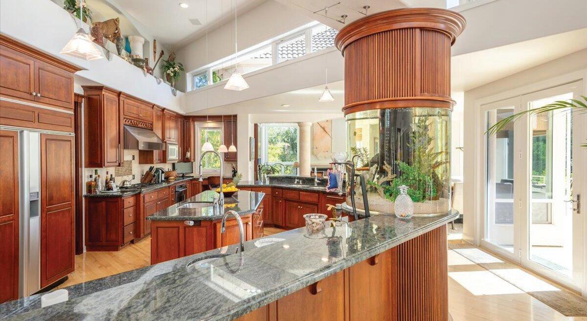 Escape to your own Hawaiian paradise with this remarkable single-story resort estate in Redding, California. This unique 3-bedroom plus large office, 3-bath home has garnered national attention, being featured in Open House Magazine, thanks to its unparalleled design and amenities. Nestled within the serene confines of a gated community, flanked by the Tierra Oaks Golf Course, this home offers an abundance of recreational options, including tennis and pickleball courts. The residence is a masterpiece of luxury living, showcasing top-tier finishes and high-end appliances throughout. For culinary enthusiasts, the kitchen is a dream come true, boasting two expansive islands and a wet bar. The centerpiece of the kitchen is a mesmerizing saltwater round fish tank, perfect centerpiece for entertaining guests.