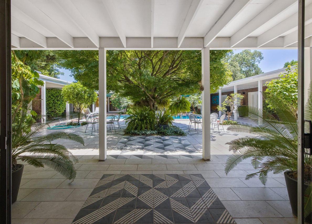 Truly one of the most unique homes in Visalia! This wonderful Beverly Glen home was designed and built by modernist-school architect George Young from the famous Edward Durrell Stone firm in 1960. Stone designed and built some of the most famous buildings in the United States, including Stanford Hospital, Radio City Music Hall in Rockefeller Plaza and the Kennedy Center. This home must be seen to appreciate its completely unique features and design. Architect George Young created the home around a central courtyard. Each room has access to the courtyard through sliding doors. Entire home can be shut off to access behind enclosed patio system. Gorgeous, mature landscaping completes the feel of a hidden retreat in one of Visalia’s finest neighborhoods. Four bedrooms, three baths and the perfect mix of vacation and every day living. The home is approximately 2372 ft. ²