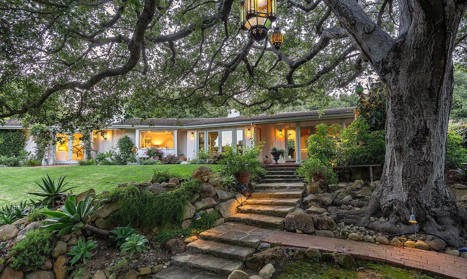 Enter through the historic gates of the storied Arcady Estate, wind along the oak-canopied private lane, and arrive at a knoll-top retreat, a truly magical respite from the stress of the ‘real world’. Reminiscent of a French country cottage, this 3-bed, 3-bath single-level home resides within a gated, incredibly enchanting acre, with every window offering a romantic vista; a lantern-lit oak glen, stone steps and meandering pathways, tranquil cascading waterfall and rolling lawn, passion fruit vine-covered greenhouse, curving stone stairway to a secluded gazebo, large native boulders, and a variety of fruit trees. Schedule a tour of this gorgeous property, explore its abundant amenities, and experience its beauty first-hand!