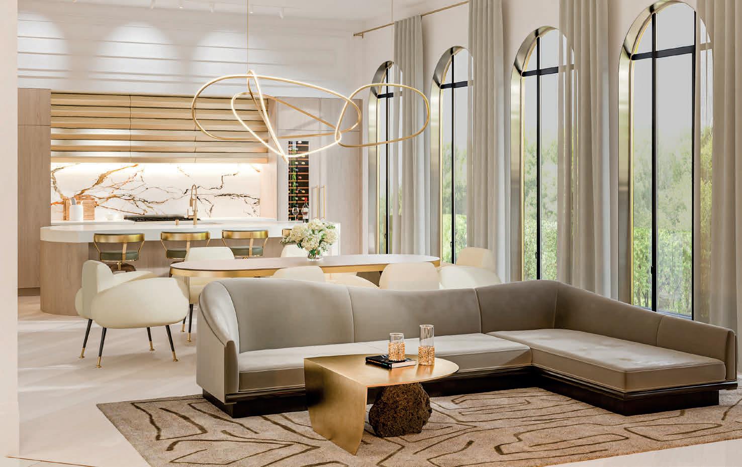 As you enter the home, you are greeted with an elegant and spacious living room, perfect for entertaining guests and family. The chef’s dream kitchen is complete with gorgeous cabinetry, top-end appliances, wall ovens, a 6-burner gas cooktop, and a coffee or wine station with two additional refrigerators. This kitchen is designed to make entertaining effortless, with ample space for preparation and cooking, and perfect for hosting dinner parties and get-togethers.