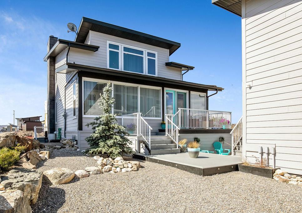 This 4-SEASON home in the Cottage Club at Ghost Lake has it all! You will be impressed from the moment you lay eyes on this property. A beautiful boardwalk connects the 21x21 DOUBLE DETACHED GARAGE to the main home. A couple stairs up & enter the enclosed front porch which is lovely for enjoying your morning coffee or cozying up with a great book. Thru here, you enter the home. Be wow’d with the top end finishings throughout. This OPEN CONCEPT floor plan is the perfect setup for families or entertaining. The living room offer a dramatic 2-storey fireplace. The kitchen is top notch with MIELE s/s appliances, glossy modern panel cabinets & sleek quartz counters. A custom dining table attaches seamlessly to the center island. The patio doors open up to the WEST FACING deck and amazing lake & mountain views. Upstairs offers a nice living space, open to below and capitalizing on the incredible views! Here, you will find a 3pcs bathroom & bedroom - perfect for kids or guests! The Primary Suite takes up the entire lower level walkout! A private escape to the backyard here. A true SPA 5pcs Ensuite with infloor heat, steam shower, deep soaker tub and dual vanity. The detached garage has a FINISHED STUDIO space offering an additional bedroom and another bathroom plus KITCHENETTE area! - perfect for those working from home OR hosting guests in on the weekend! Loads of storage space under the front deck for all your water toys. $210/month condo fee includes this fully gated community, clubhouse complete with indoor pool, fitness center, library, outdoor hot tub, outdoor tennis courts, beach volleyball, private beach access & private boat launch!