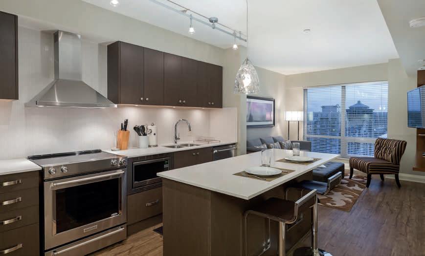 1 bed, 1 bath unit featuring breathtaking skyline views in the highly-sought after building, Vogue! This unit has been developer owned since the building’s completion in 2017 and was finished at a higher specification, giving it a very luxurious feel! The gourmet kitchen features quartz countertops, Westridge Cabinets with European-style hardware, and stainless steel appliances. The large kitchen island with bar seating provides the perfect space to prepare, dine, and entertain. When you enter the living room, you’ll notice the hotelinspired built-in with 40” TV. The spacious bedroom features built-in side tables and another 32” TV, along with a large closet. Quartz countertops continue in the 4-piece bathroom, which has been upgraded with a custom glass shower. An energy efficient washer and dryer is located in-suite. Even the hallway leading to this unit was upgraded and customized to give an elevated experience that is different than the other floors. Titled underground parking and extra storage is included. The Vogue’s 36th floor is dedicated entirely to amenities including a gym, yoga studio and meeting room. Desirably located in Calgary’s Downtown west end, the Vogue is 1 block from the LRT and just steps away from Calgary’s Bow River Pathway and the Core Shopping Mall, as well as just a 15 minute walk to countless amenities on 17th Avenue and in Kensington.