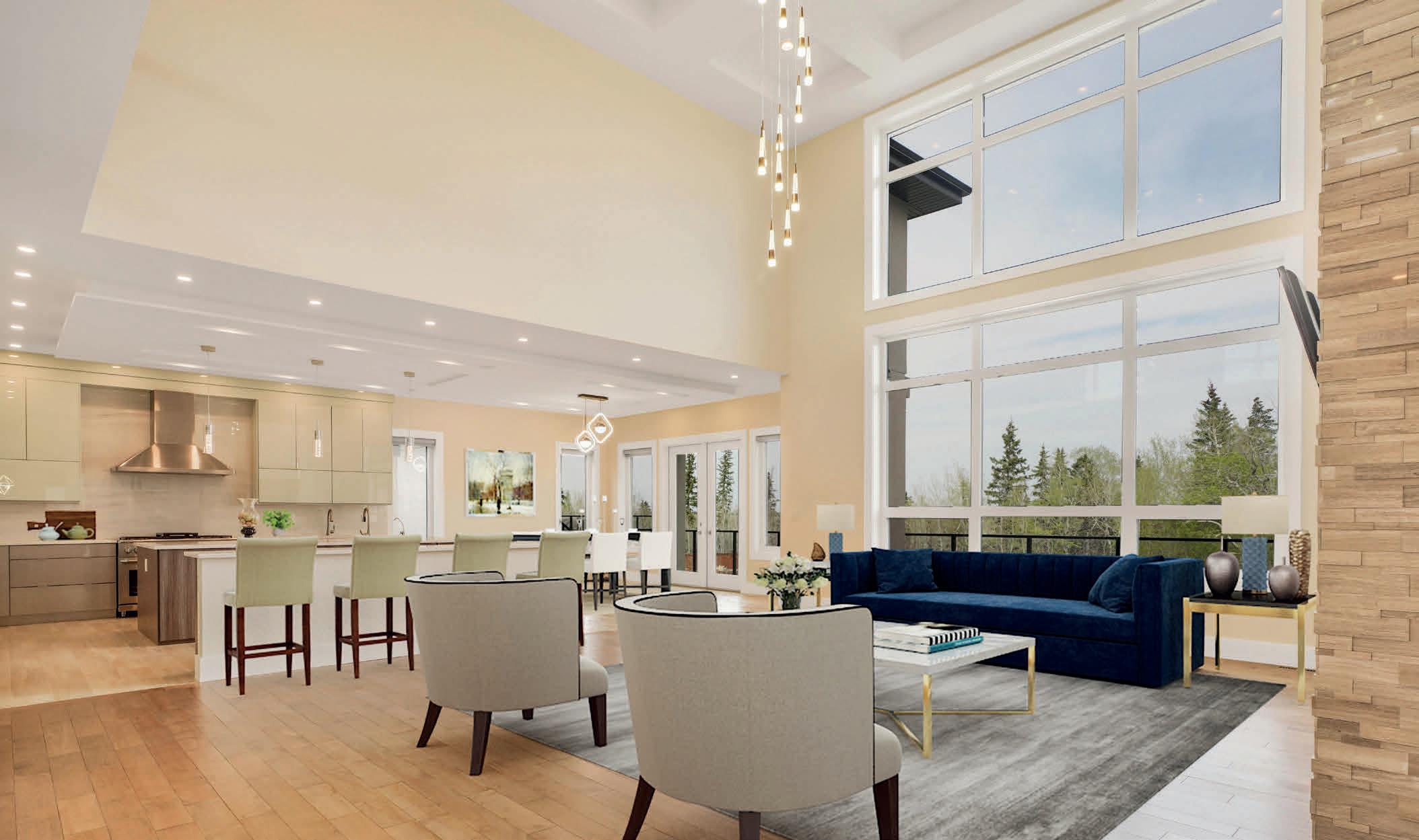 Introducing a masterpiece of luxury living, this exquisite home boasts exceptional architectural design spanning over 4,550 sq ft with soaring 20’ high ceilings. The breathtaking panoramic views of downtown and Edmonton’s River Valley can be enjoyed from all three developed floors, offering a perfect backdrop for both entertaining and relaxation.