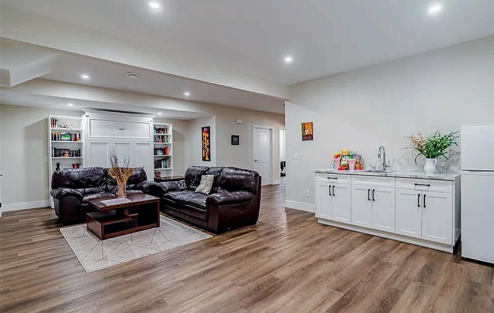 The basement of this home is remarkable, featuring an epic media center with a professionally soundproofed theater, a wide-open concept bar, and two recreation spaces ideal for gatherings or retreating throughout each season in your own little paradise. The home’s upgraded construction features and main floor flex-room with an ensuite make it ideal for inter-generational families to live life in an absolute dream home.