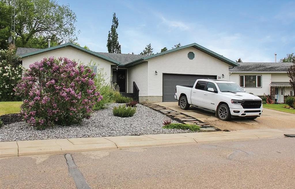 Discover your dream home at 28 Canary Crescent, a beautifully maintained bungalow backing onto the scenic Sedgewick Golf Course. This charming residence offers a seamless blend of comfort, convenience, and style. Situated on a quiet crescent, the home boasts backyard gate access to the golf course, perfect for golf enthusiasts and nature lovers alike. The main floor features an open-concept kitchen, dining, and living room. Enjoy cozy evenings by the fireplace located next to the patio doors, which lead to a spacious 12 x 24 deck with stunning golf course views. The gourmet kitchen is equipped with a good-sized fridge and a standup freezer, designed for both everyday living and entertaining. The main floor includes three bedrooms, with the large primary bedroom offering a walk-in closet and a 3-piece ensuite bathroom, providing a private retreat.