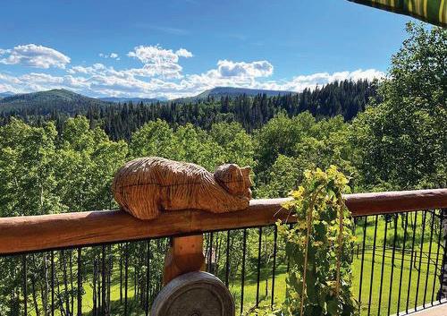 Featuring a large pond and a smaller pond, flowing well, a meadow, and trails that wind through a mature forest, this property is a haven for birds, wildlife, and tranquility seekers. The highlight of the property is the stunning 4 bedroom, 3 1/2 bath home with an ICF walkout basement that is loaded with exceptional features. Upon entering the home, you are greeted with a main level that showcases a well-appointed kitchen, dining, living room area with access to a front covered deck and a full-length balcony that overlooks the pond. Lux vinyl plank flooring is thru most of the home, with tile floors in the baths & laundry room. The kitchen is equipped with a large island, quartz counters, corner L-shaped pantry, high-end Whirlpool appliances. Skylights bring in natural light. The dinette is bright & inviting. The living room features a cozy gas fireplace, 70” LG TV & cabinets. The primary bedroom suite is a true retreat with balcony access, a 5-piece ensuite that includes a 2 person jetted tub, bidet toilet, shower unit, and a double sink vanity. A large walk-in closet with organizers completes the suite. Additionally, there is an office off the front entry, and two more bedrooms on this level. The basement offers a spacious family room that leads out to a patio through patio doors, 2 bedrooms (1 used as exercise room), media room, 4-piece bath, utility room. Outside, the property features low-maintenance landscaping, a fire pit/picnic spot by the large pond, trails through the trees, a heated insulated shop, with attached 3-bay garage (with 3-pce bath), storage sheds, older garage, log cabin. Antique machinery, lawn benches & tables are included. Most household furniture can be included with the property, making it a truly remarkable and turnkey opportunity for the next owner.