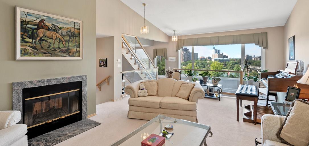 Welcome to this truly EXCEPTIONAL FIND in downtown Edmonton. The combination of luxury, comfort, & unique features make it stand out, especially with rare amenities like an EXCLUSIVE ROOFTOP PATIO & 3 TITLED PARKING STALLS! This immense corner unit sprawls 2 floors & features a chef-inspired kitchen. For those who love to create & host, there is a MASSIVE GRANITE ISLAND, 6 BURNER GAS STOVE, wine cooler & more! There are 2 bedrooms on the main level, one with a 3pce ensuite plus a separate bathroom for guests. The private primary suite on the 2nd level hosts a walk-in closet, DOUBLE SIDED FIREPLACE & 6pce ensuite with SOAKER TUB, double sinks & STEAM SHOWER. Completing the 2nd level is a bonus room and laundry. The private rooftop patio with bar, HOT TUB, INFRARED SAUNA, putting green, & SPECTACULAR VIEWS of the city is perfect for winding down or entertaining. With a blend of modern convenience & luxurious living in the heart of the city, this one of a kind condo is perfect for the most discerning buyer!