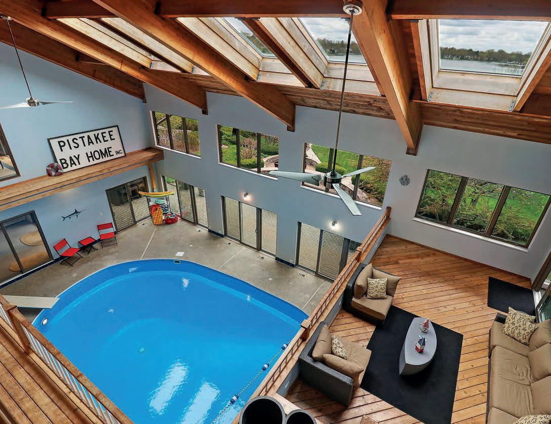 Do you need an escape? Would you like to feel like you’re on vacation year-round? You’ll find this and more in this contemporary Pistakee Bay lakefront estate. From the moment you enter, you’ll be met by panoramic lake views and spaces that are perfect for entertaining and enjoying the lake life. This luxurious retreat has 5 bedrooms, 5 1/2 bathrooms, and three stories of well-designed living space. The current owners have completed many projects including an updated kitchen, main floor bathroom, updated pool bath, removal of a three-story fireplace, and mechanical improvements. The well-thought-out kitchen features new cabinets, a high-end Wolf stove, a breakfast bar, and an eat-in area, perfect for entertaining guests. In addition, there is a separate formal dining room that overlooks the lake, adding a touch of elegance to any meal. The main floor space allows for multiple groups to enjoy their own space. The two cozy spaces on the main floor are the living room with a wood-burning fireplace and a more casual family room with a fireplace. Both rooms have breathtaking views of the lake. The 3-season room and pool deck sitting room are great spaces to watch the action. Upstairs you’ll find the main bedroom with its spa-like bath with a clawfoot soaker tub, rain shower, and walk-in closet. Adjacent is a sitting room or a perfect home office space. One of the standout features of this home is the indoor full-size pool with a pool deck and multiple viewing areas. This space is perfect for year-round enjoyment and provides a relaxing and fun place to gather with family and friends. The full walkout lower level is an entertainer’s dream with a recreation room, sauna, and wine room, perfect for unwinding after a long day. The 5th bedroom features its own full bath and sitting area. If you need room for a workshop, toy storage, or a gym there is plenty of room for all. Sliding doors lead out from the pool area to the luscious yard making it easy to enjoy a swim and the beautiful scenery. Multiple brick paver patios provide plenty of space for outdoor entertainment. There’s also a lakeside firepit for cozy evenings by the water. The home has its own pier on Pistakee Lake, providing easy access to water activities. The property sits on an nearly acre of lush and beautifully landscaped land, providing privacy and tranquility. This home is the perfect blend of luxury, comfort, and outdoor living. When you’re ready to leave you’ll enjoy taking your golf cart to the historic Pistakee Yacht Club for events and sailing.