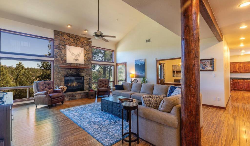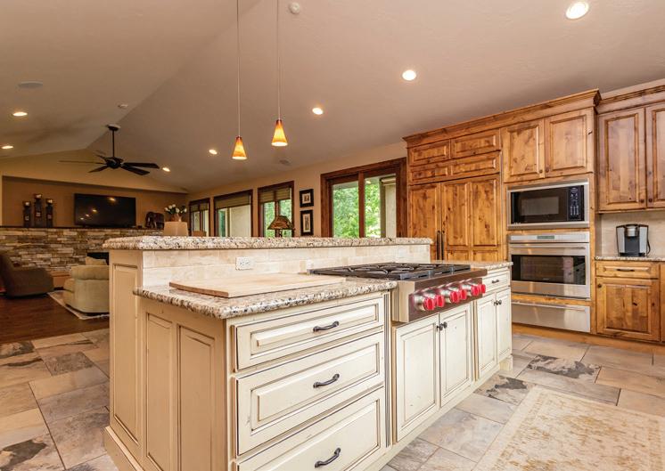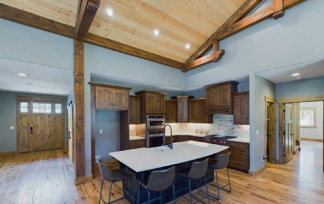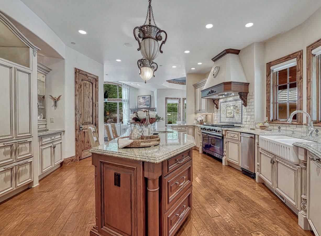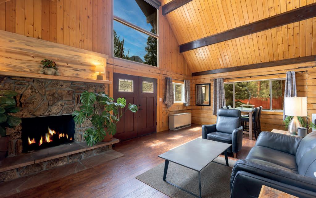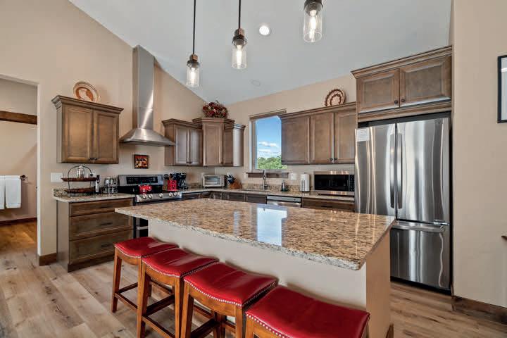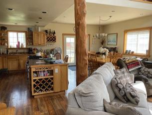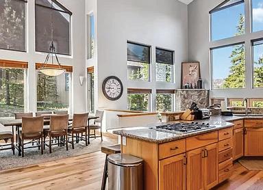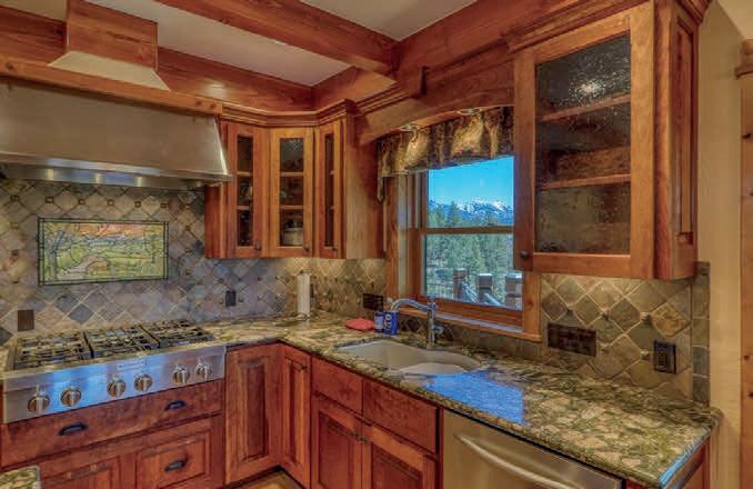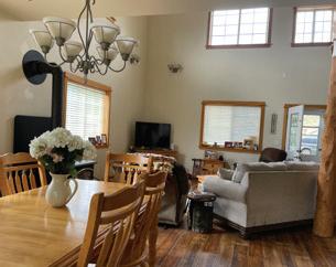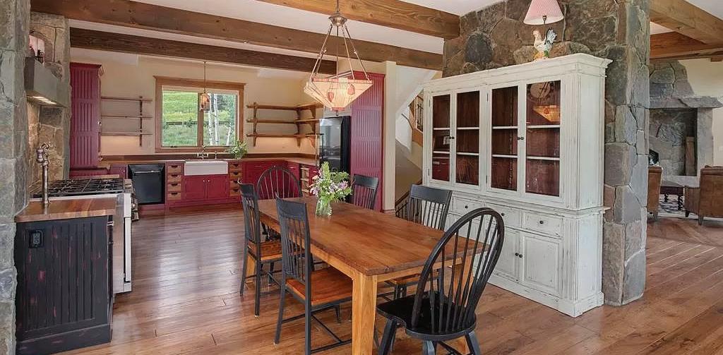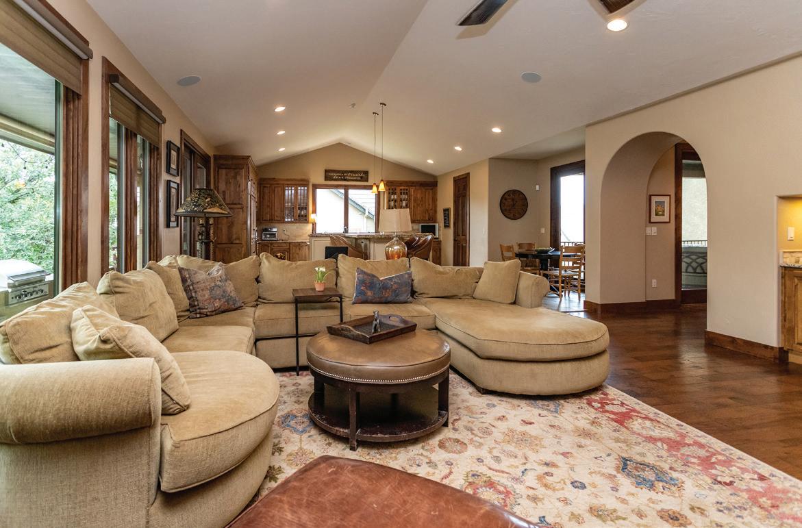 Constructed in 2000, this carefully designed 3,912± square foot home features four bedrooms and four bathrooms. Upon entry, you're greeted by an open floor plan that seamlessly connects the living, dining, and kitchen areas, creating an inviting space for both relaxation and entertainment. The open floor plan is accentuated by tall, vaulted ceilings and large windows framing the surrounding mountain views, as well as beautiful wood beams that add character and charm to the home, creating a warm and welcoming ambiance.