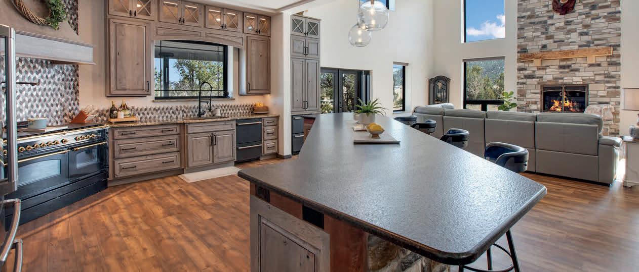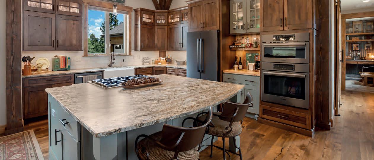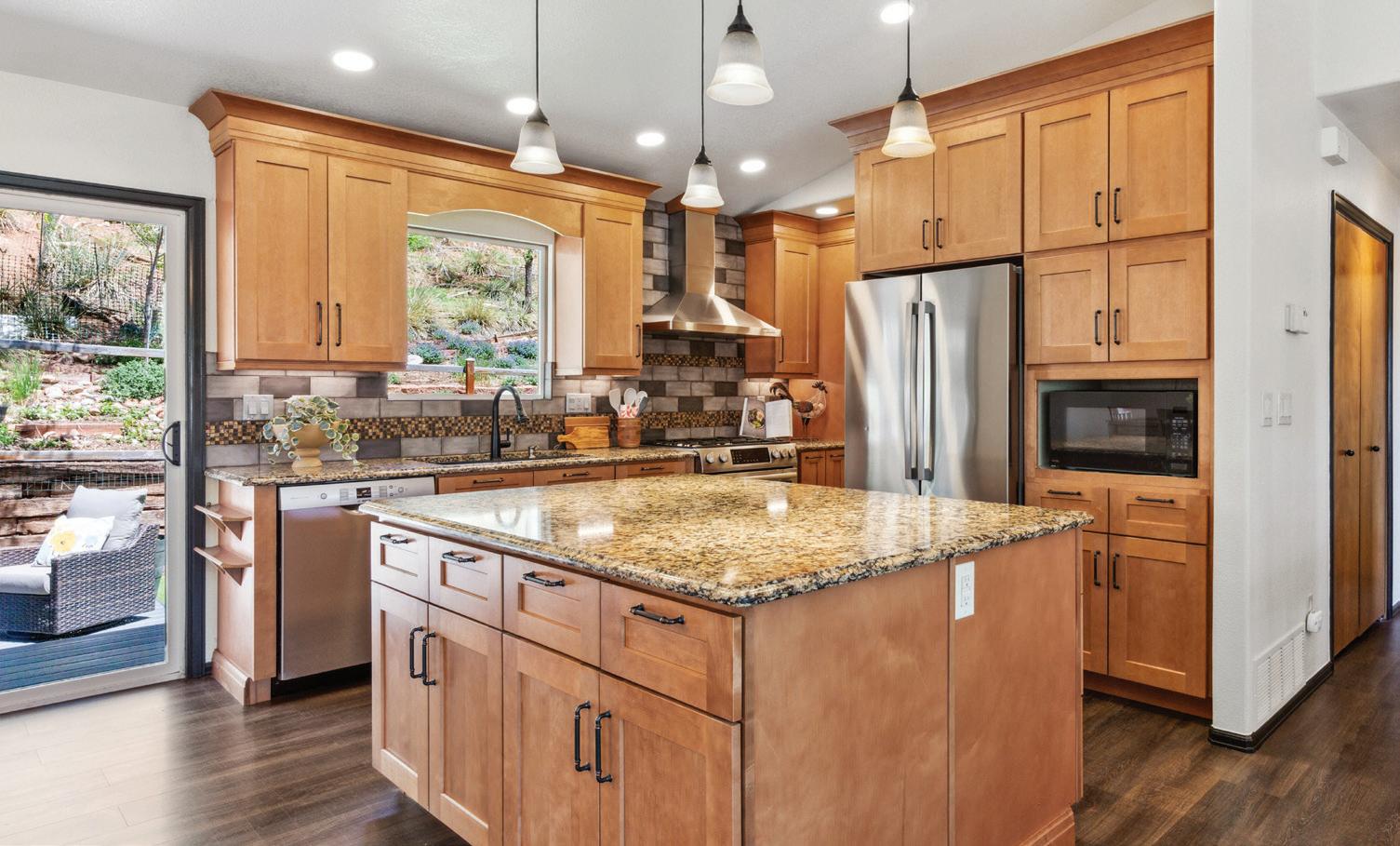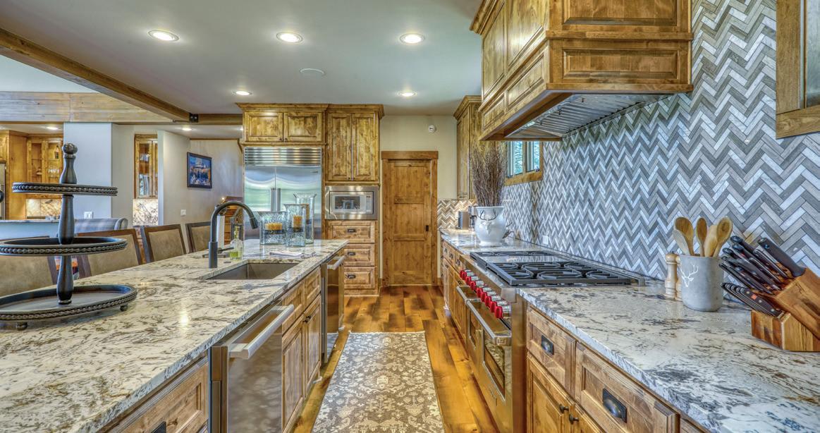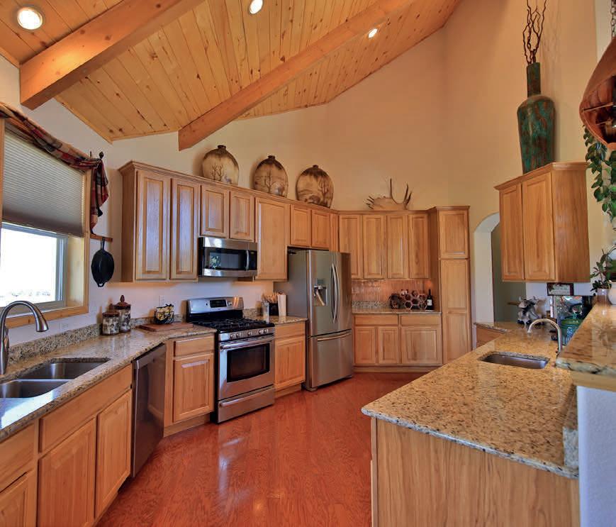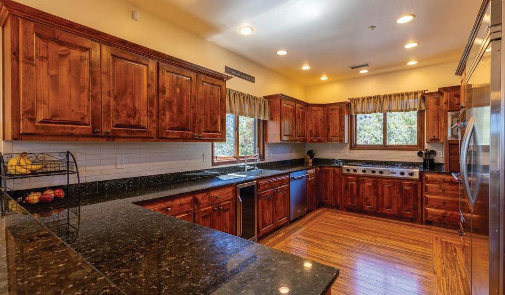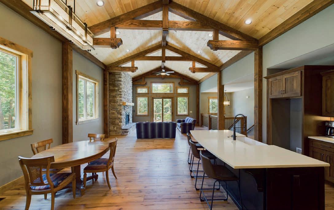 Constructed in 2000, this carefully designed 3,912± square foot home features four bedrooms and four bathrooms. Upon entry, you're greeted by an open floor plan that seamlessly connects the living, dining, and kitchen areas, creating an inviting space for both relaxation and entertainment. The open floor plan is accentuated by tall, vaulted ceilings and large windows framing the surrounding mountain views, as well as beautiful wood beams that add character and charm to the home, creating a warm and welcoming ambiance.