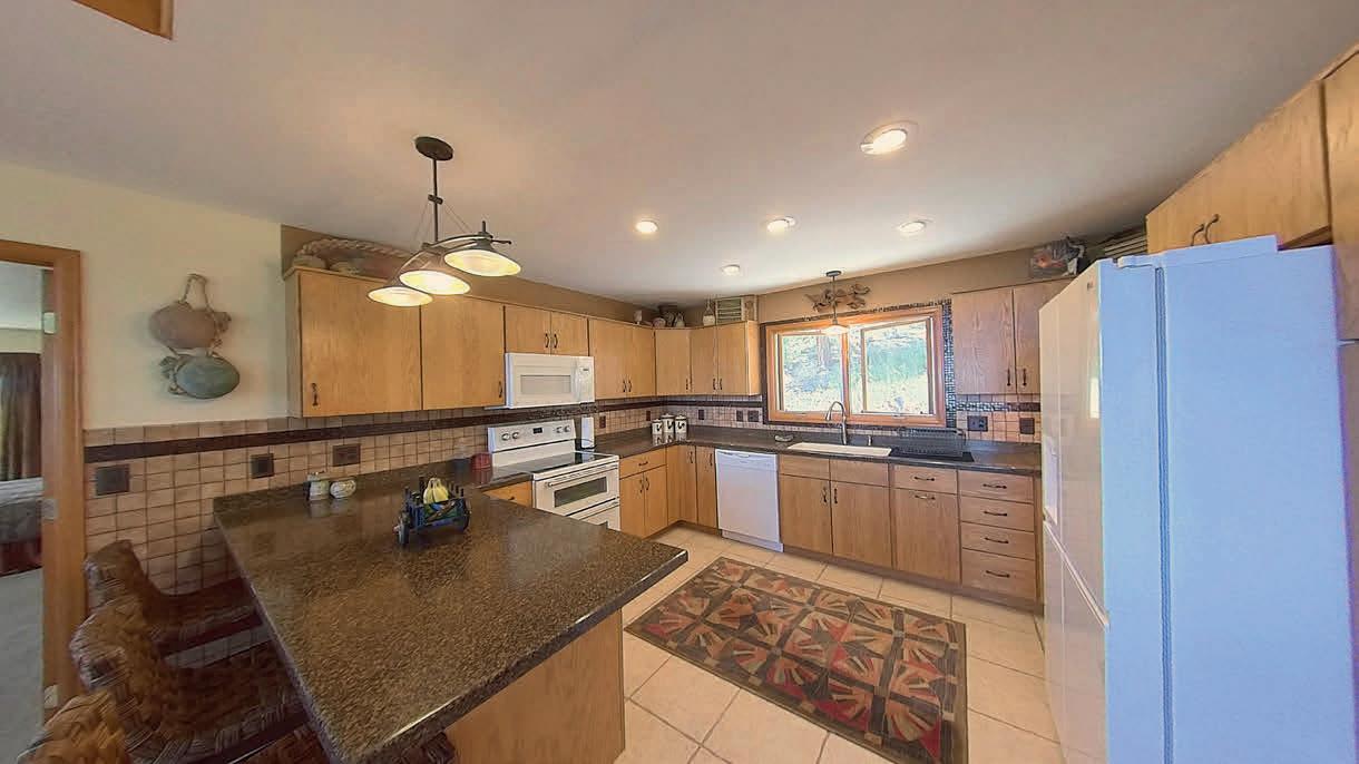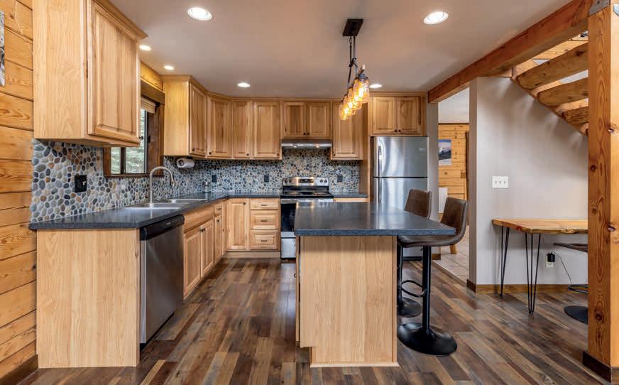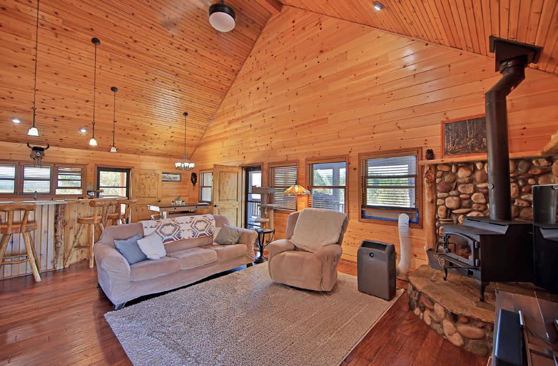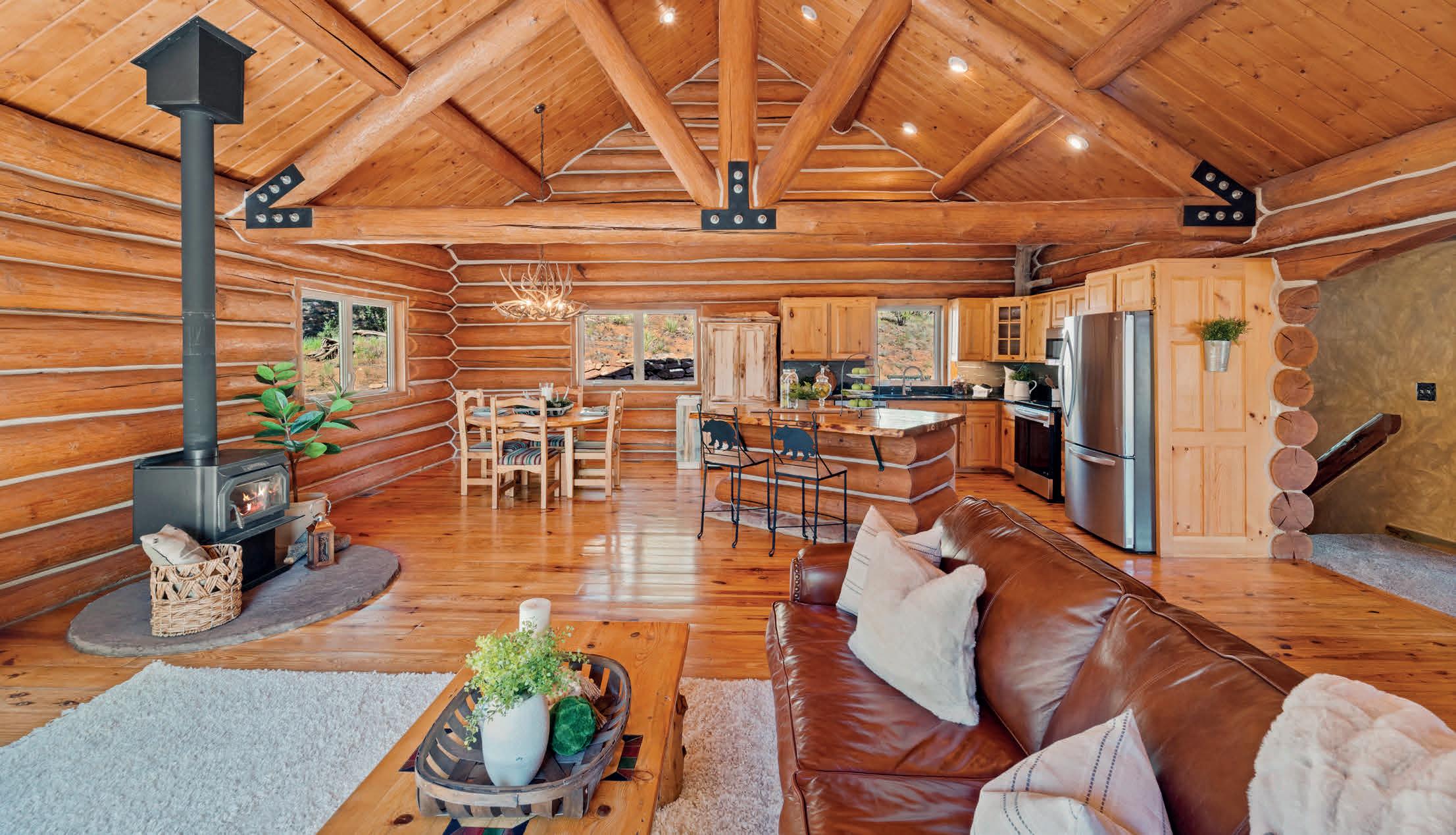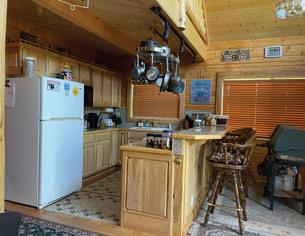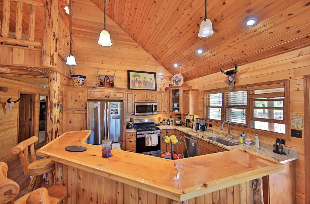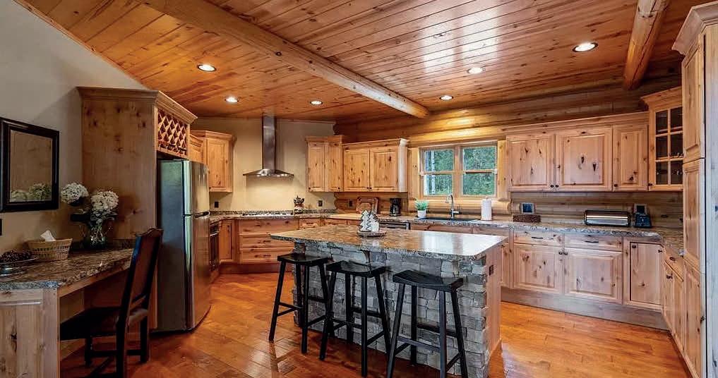 Meticulously maintained by its original owner, this log cabin radiates pride of ownership and attention to detail at every turn. The custom log island, adorned with intricate live edge carvings, and the raw edge granite countertops, artfully crafted to resemble mountain silhouettes, are just a few of the standout features that set this home apart.