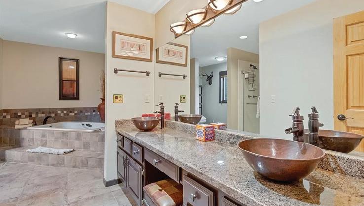• Large master suite with jacuzzi tub, large tile shower, vanity, and large walk in closet