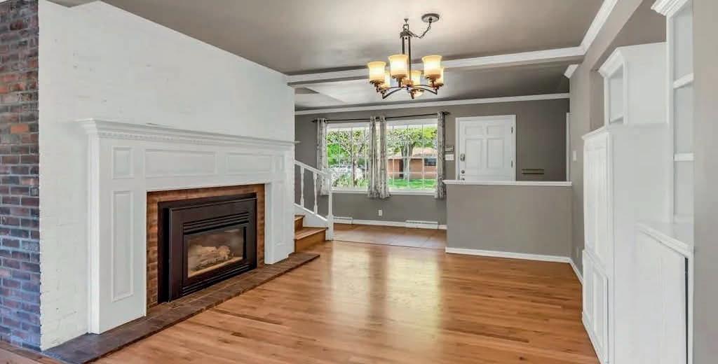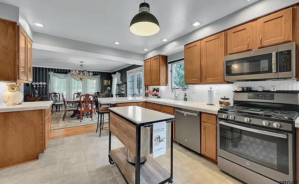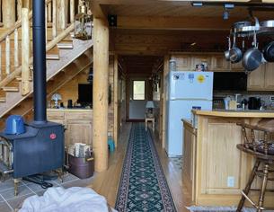 Step into the heart of the home where the new kitchen appliances, custom chandeliers, and a spacious open-concept kitchen, dining, and living area await. The log beamed ceiling adds a rustic charm, seamlessly blending modern conveniences with classic log cabin aesthetics. The fully finished basement level offers a walk-out floor plan and ample space if you wanted to easily reconfigure for an additional bedroom.
