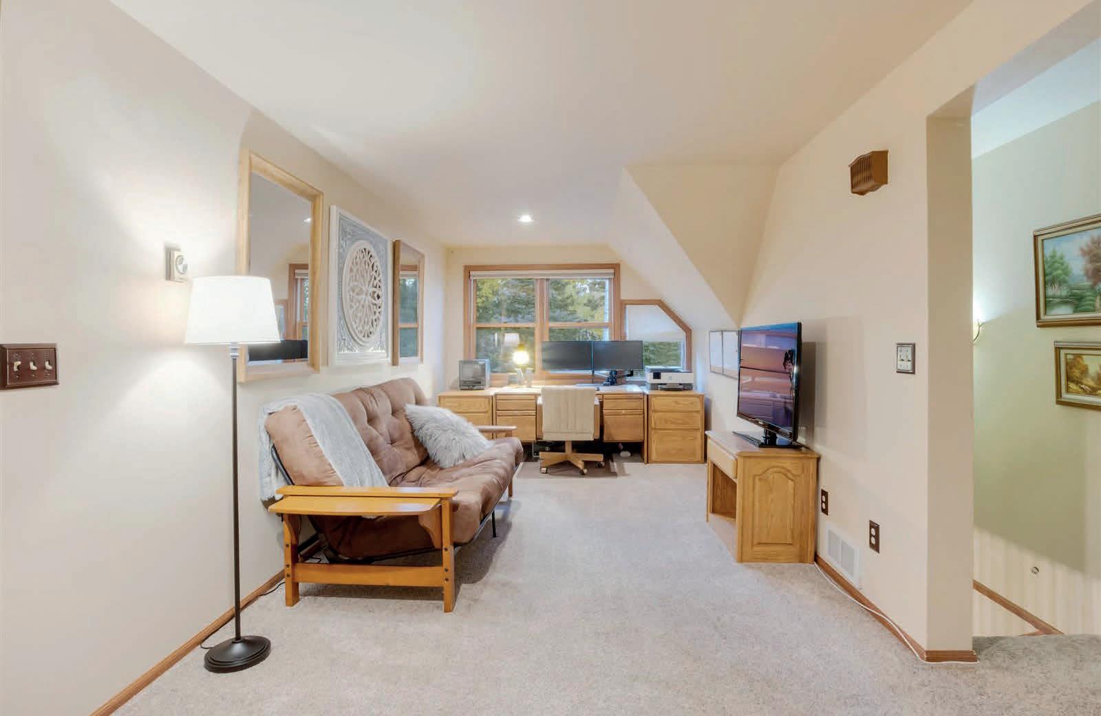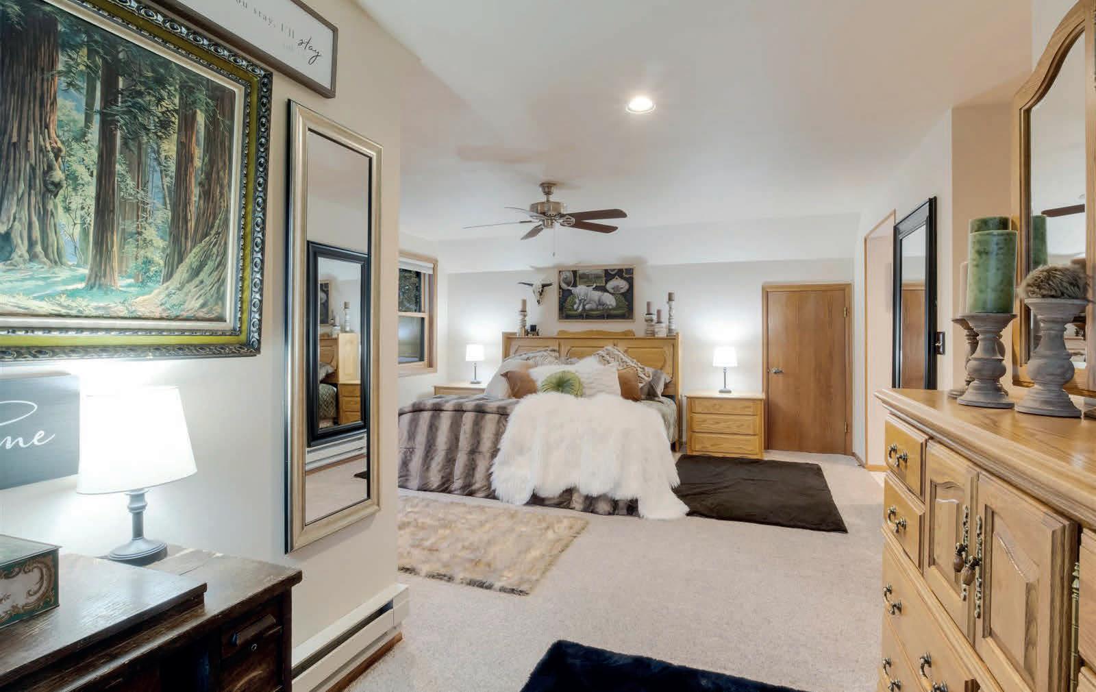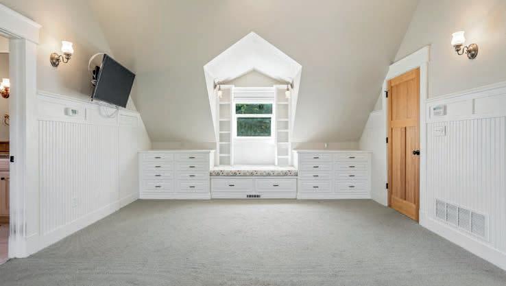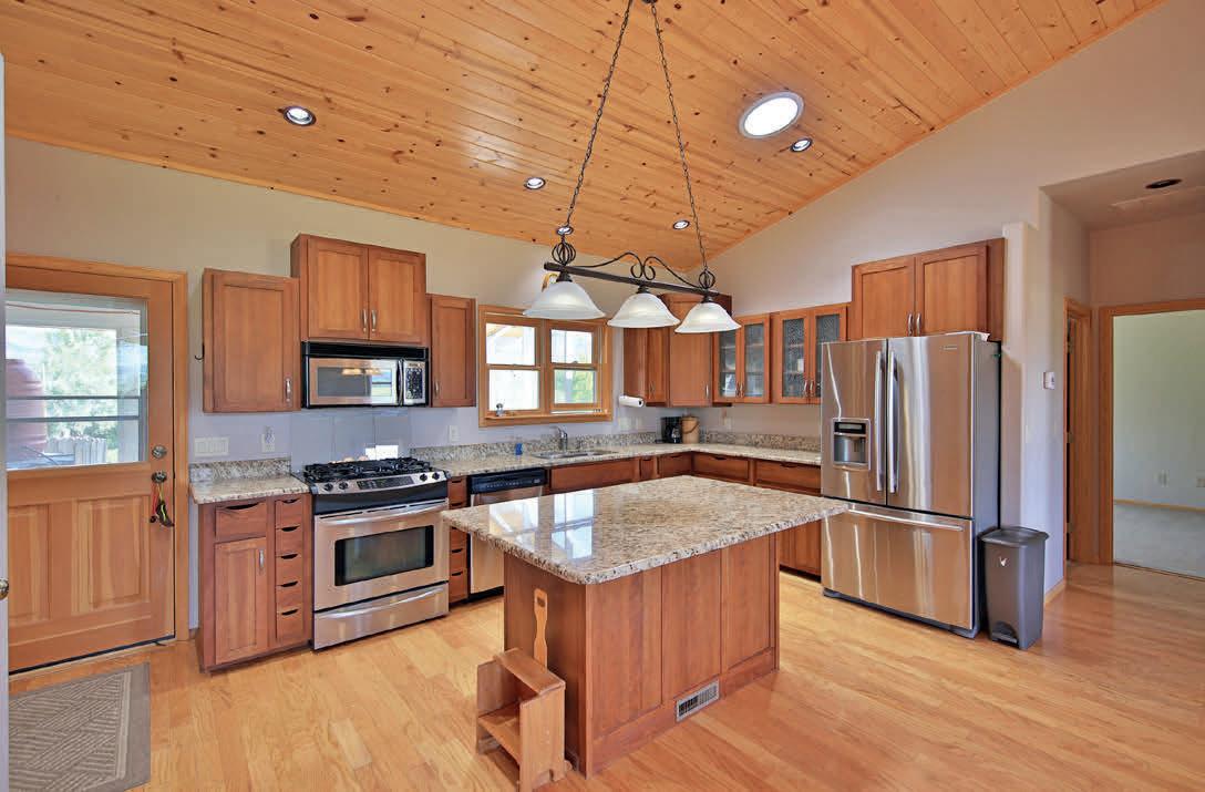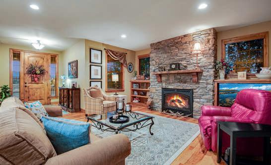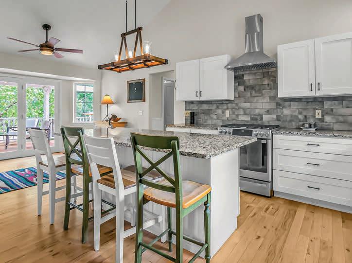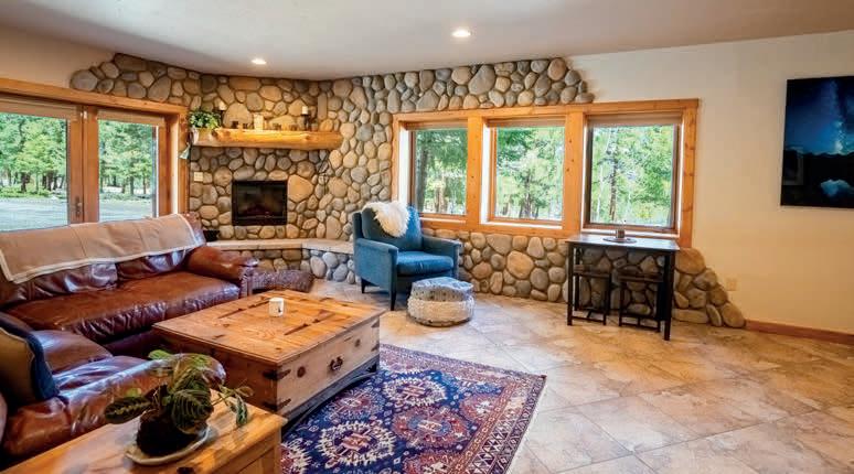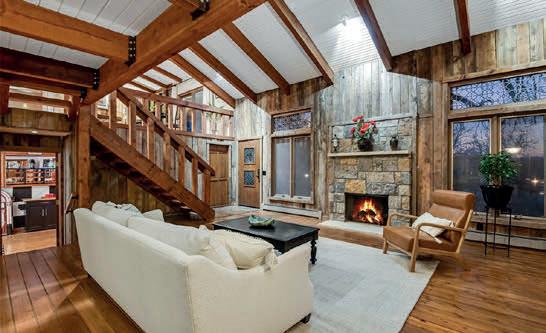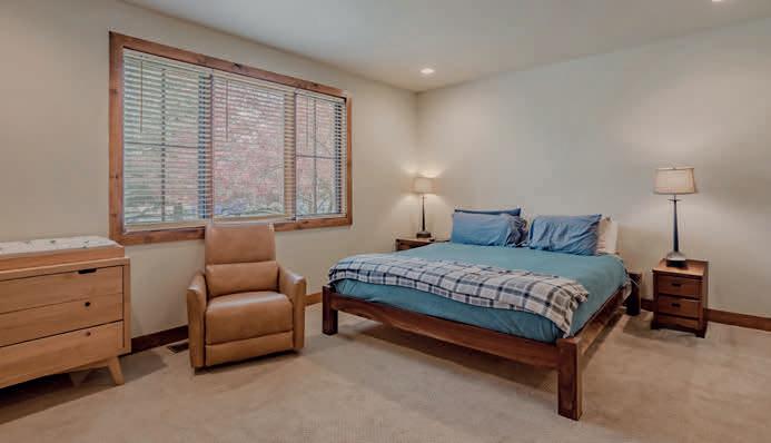 On the main floor, there’s an additional bedroom, perfect for guests or as a home office. High speed fiber optic Internet is available. Open split staircase leads down to a sweet recreation space with a dry bar, two serene bedrooms with large closets, a full guest bathroom, and extra storage. The mudroom, built with timber from the property, includes a barn-style door, a custom coat station, granite counters, a copper sink, and laundry connections.