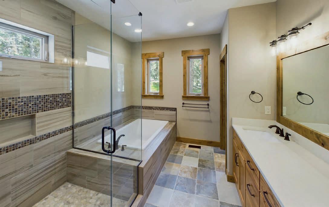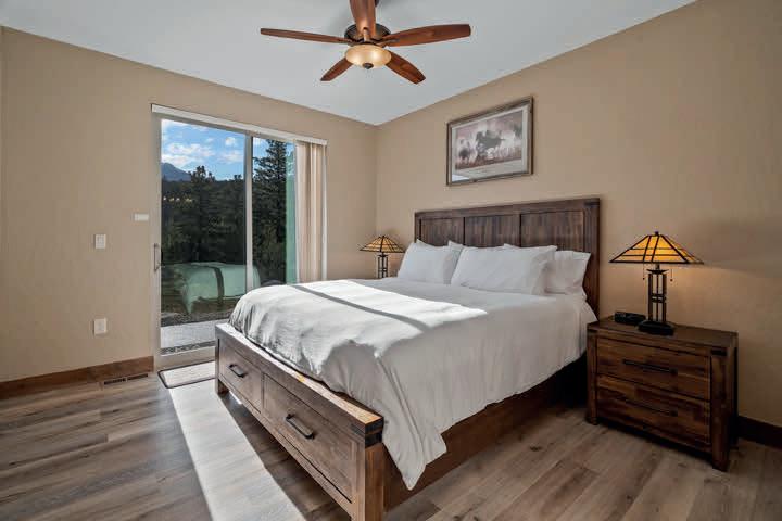 Located off the main living area, the spacious master suite features private access to the expansive back deck, perfect for enjoying your mountain surroundings. His and hers closets and vanities in the ensuite bathroom offer plenty of space for getting ready, while a large tile shower with natural light and multiple showerheads provides a spa-like experience. Also on the main floor is a large mudroom/laundry room providing additional storage options that leads to an oversized three-car garage with ample space for large vehicles and more storage.