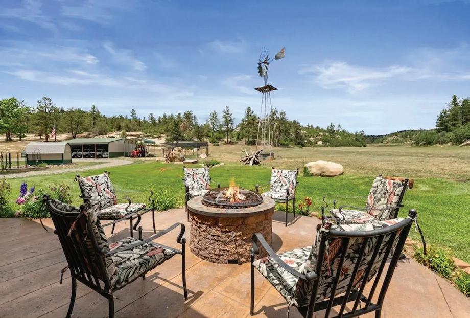 Welcome to Dusty Ranch, a serene 40-acre retreat near Canon City. This luxurious property offers a gated entry and a custom hilltop home with stunning views. Enter through a handcrafted wrought iron door to a spacious open-concept living room with vaulted ceilings and a floor-to-ceiling stone gas fireplace. The chef’s kitchen features an imported Hallman gas range, high-end stainless appliances, and a stone island. The master retreat includes a private deck, a lavish ensuite bath, and panoramic views. Additional features include three bedrooms on the main level, a guest suite with a private entrance, in-floor radiant heat, and a Culligan water system. Outdoors, enjoy 30 acres of fenced property, two garages, a barn, a large shop, and direct access to BLM land. Just under two miles from Hwy 50, Dusty Ranch combines luxury living with natural beauty.