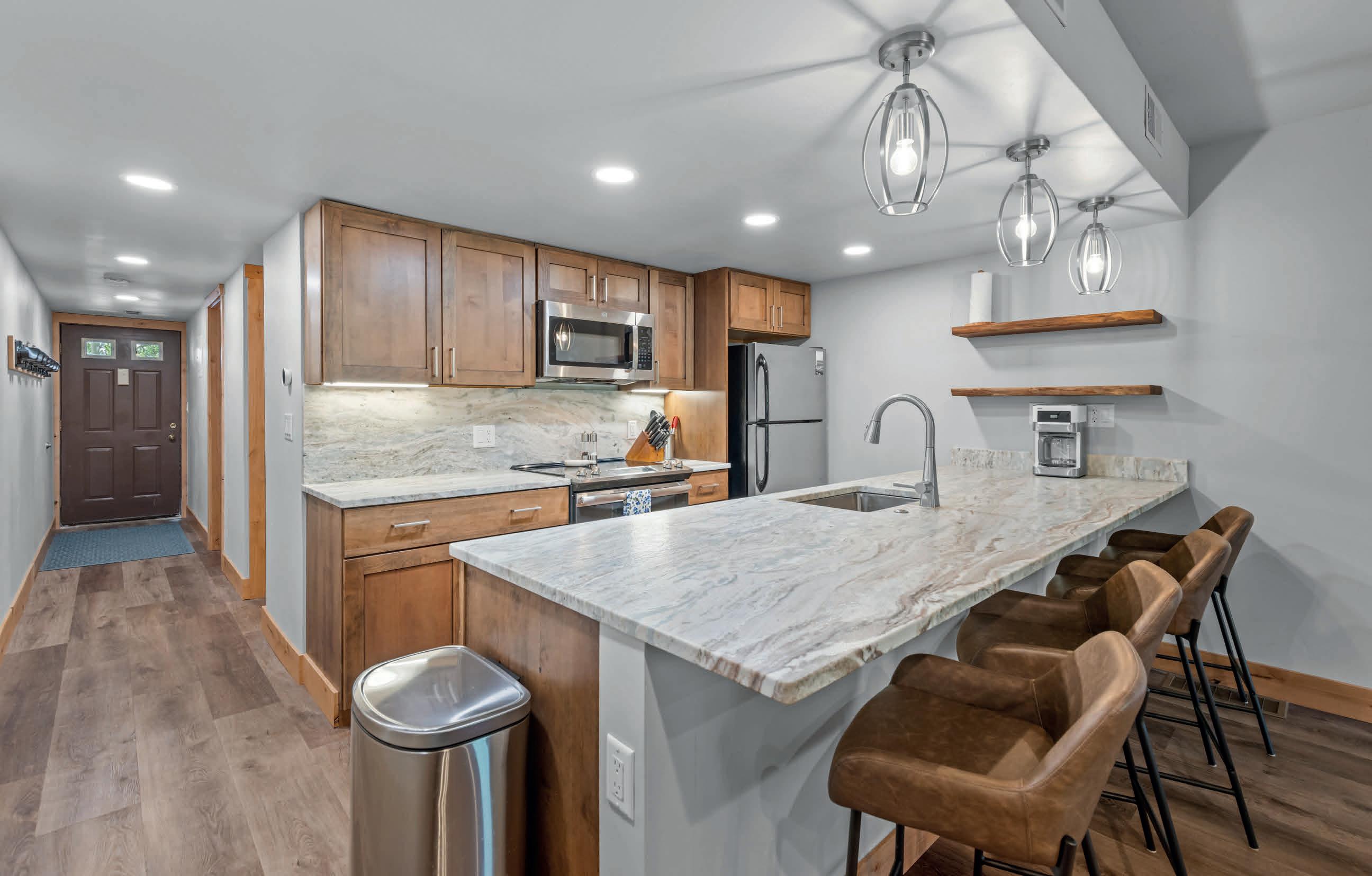 You’ve seen the rest, now see the BEST! C is the best Mountain Side building, overlooking Jug Creek with dramatic views to Peak 1, Victoria, Royal, Wichita & Chief. First floor, few steps, underground parking, and the biggest double-wide 2B plan, w/giant deck accessed from living or primary bedroom for indoor/outdoor living space. Fully remodeled including all base, case, doors, trim, flooring, kitchen, bathrooms, hearth, walls, fixtures, and even... a stacking W/D in the primary closet! Furnished with a few Seller swaps or exclusions. Well-managed HOA with newly lower dues, now just $655.00/ month. Frisco’s favorite clubhouse, recently upgraded and ready for your year-round enjoyment, just steps from this condo! You’re not going to want to miss this one!