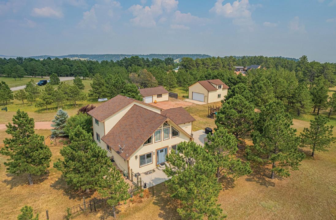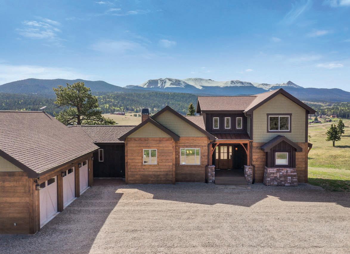 Perched on 20 pristine acres bordering Mueller State Park, this custom home offers breathtaking views of Pikes Peak. The gated entry leads through meadows with pine and aspen trees to a residence showcasing a grand foyer with stone inlay and hardwood floors. The great room features vaulted ceilings, expansive windows, and a stunning fireplace. The chef’s kitchen includes top-of-the-line appliances, alder cabinetry, granite countertops, a spacious island, and a dining area. The main floor also has a walk-in pantry, half bath, and a rustic mudroom. Upstairs features an office, two bedrooms, and a full bathroom. The unfinished basement offers additional space, and the three-car garage has an upper level suitable for a bonus room. The property includes a Morton barn and an original homestead cabin with potential for a guest house. Just 15 minutes from Woodland Park, this estate blends seclusion with convenience.