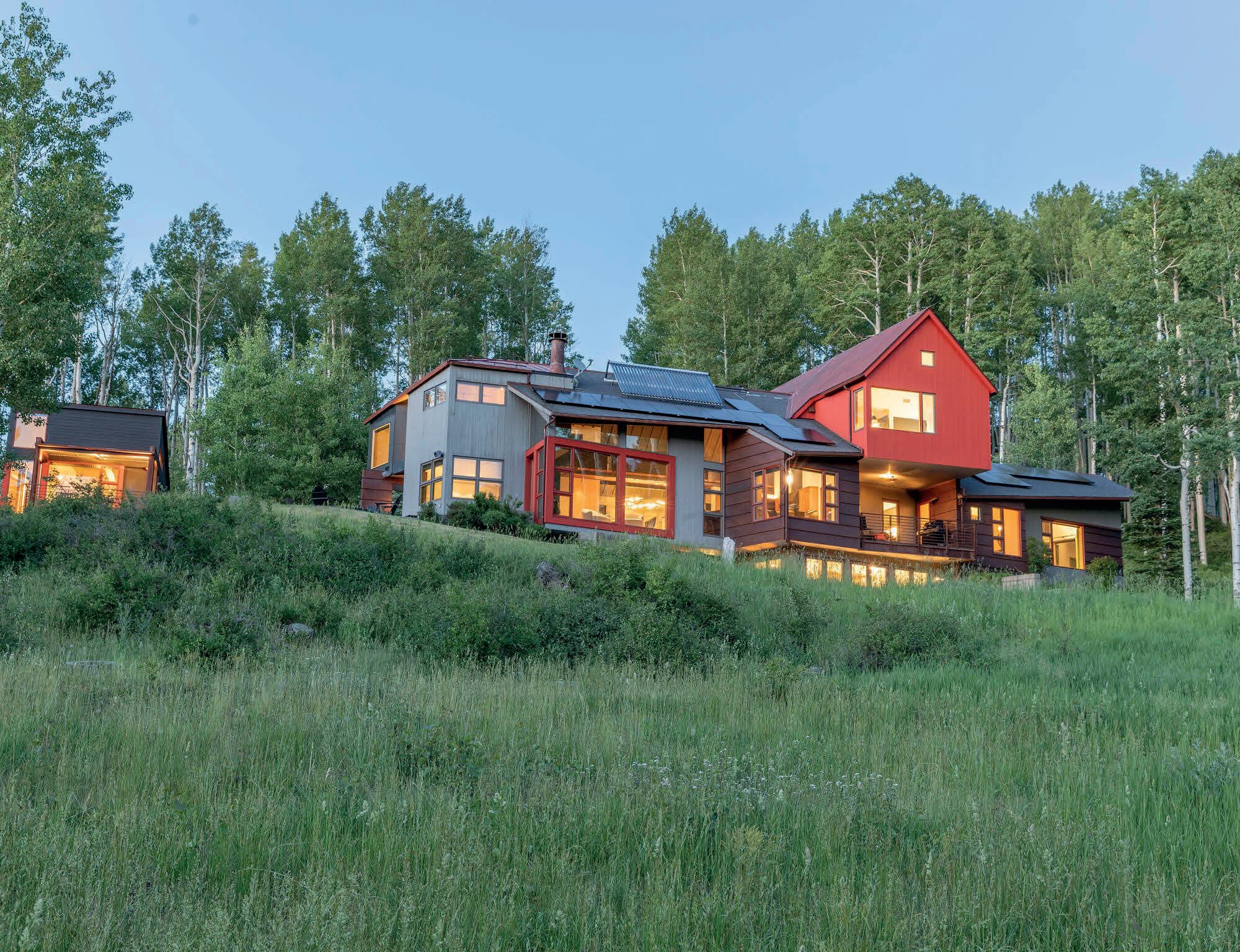 Nestled on a remarkable 12-acre lot, this exceptional property offers an idyllic setting featuring direct access to a national forest, a soothing recirculating creek, and stunning a pond. Located just five minutes from the entrance to Telluride's Mountain Village, this meticulously crafted CCY Architects property seamlessly blends the allure of mountain modern style with the surrounding