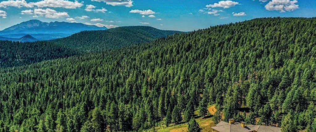 This meticulously designed luxury estate sits on 40 acres of wooded land zoned A-1 (agricultural), bordered by National Forest on 2 sides and BLM land on the third, and only 10 minutes from Woodland Park, offering a unique blend of elegance and tranquility. This custom home was constructed in 2004 and has been used as a second home by the original owners. A heated 3-car garage, new cobblestone driveway, flagstone entry, and exterior copper gutters add a touch of grandeur to your arrival. The gourmet kitchen is equipped with top-of-the-line appliances, including two Bosch dishwashers, a Subzero refrigerator, and a Wolf gas range with double ovens. The decorative features such as hand-painted Italian backsplash tile and hand-trowled stucco walls are set against custom alder cabinets and oak flooring. The spacious living areas provide stunning views of Pike’s Peak. Cozy up by one of the two fireplaces indoors or enjoy the outdoor stone fireplace in the patio kitchen, perfect for alfresco dining. Immerse yourself in the natural beauty surrounding the property. Engage in outdoor activities like horseshoes, unwind in the serenity of your private hot tub, or take a short 10-minute drive to play golf. This home is perfect for a couple’s solitude or hosting friends and family (easily providing lodging for 16-20). A few of this home’s unique features include a wine cellar, limestone columns/fireplace mantle, a “bunkhouse” (or exercise room, quilting room, or whatever you desire), 2 laundry facilities, and a mudroom/butler’s pantry/bar with lighted mullion cabinet doors. Structural integrity and insulation are ensured with exterior walls 18 inches thick, providing durability and peace of mind. This Tuscan-inspired masterpiece offers a sanctuary where luxury, comfort, and natural beauty converge seamlessly. Escape to this idyllic retreat where convenience meets seclusion in the heart of Colorado’s beautiful landscape.