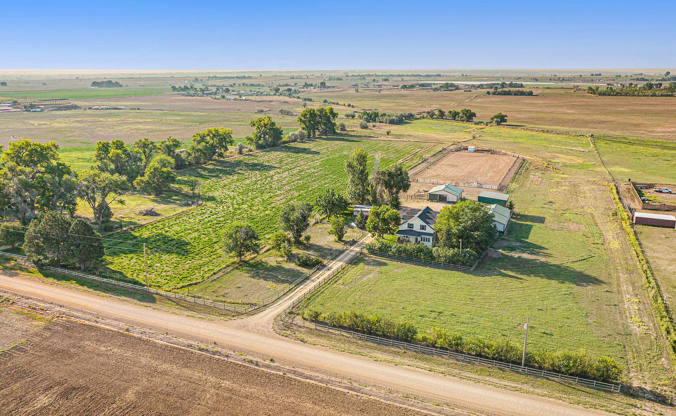 Would you love a little space in your life? Look at this remodeled quintessential 1900 farmhouse with a 2000 sq ft addition and a basement! Beautiful country setting on 5 acres, featuring horse corrals and automatic heated water troughs. Enjoy 4 bedrooms and 3 baths. Lots of light and tall ceilings, enjoy original details of a bygone area, but with modern living and conveniences. Gorgeous en-suite, with huge walk-in closet! Many options with flex space and use. Solid built house with bonus corrals, large loafing shed, barns and storage buildings. Check out the enormous 40x70 outbuilding with a finished shop area with all new upgrades, heating, LED lighting, Upgraded power and insulation. Bring your cars, boats any hobbies you have the room! Plenty of room for your RV, 3 Electric hookups and 1 sewer. Great location with easy access to Fort Collins, Greeley, Cheyenne or Loveland. All paved roads! Beautiful mountain views and gorgeous sunsets. Peaceful living in the country, but close enough to town. The quaint towns of Ault and Eaton offer great restaurants and antique shops! Did we mention the amazing mountain views!