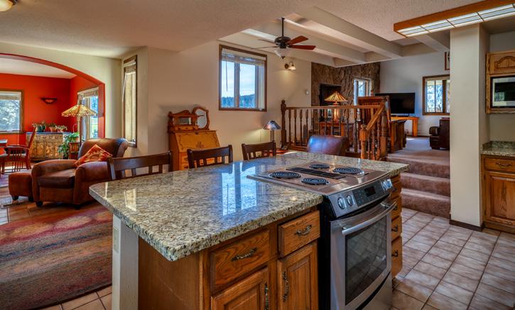 who enjoys the outdoors. A wrap-around upper deck, lower stone patios, firepit, hot tubs all provide the perfect spots for relaxing and entertaining. Westcliffe has been designated as a “dark skies” community, so star-gazing is a must. This impressive home has been beautifully remodeled and professionally decorated and includes every amenity you would expect in a home of this caliber. The rooms are spacious but still retain a warm, mountain-home feel. There are 3 levels: upper open loft, main level with open kitchen, dining and great room, master suite, laundry room and ½ bath. The lower level has 3 bedrooms, 2 baths, family room and bonus room (perfect for a study, music room, theater or additional office). The main level has access to upper deck and the lower level to the patio areas. It is the perfect home entertaining or bringing the family and friends together for some peaceful & fun times in the mountains.