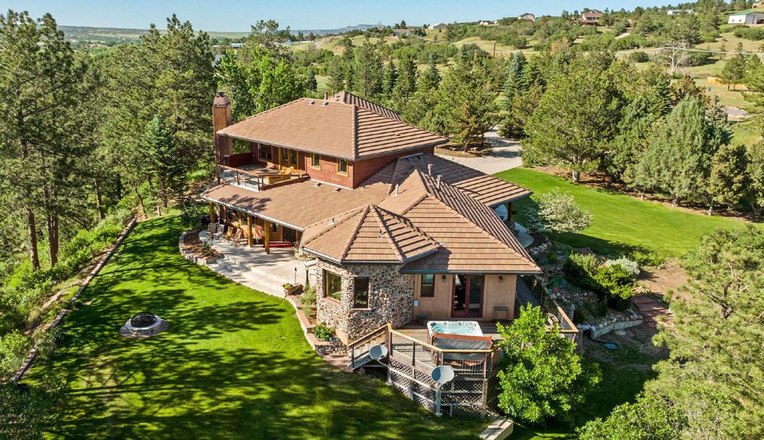 A once in a lifetime find with the casual elegance and charm of a Colorado mountain lodge overlooking beautiful Woodman Valley in El Paso County. This spectacular custom walkout rancher in minutes from 1-25, the Santa Fe Trail, Creeks & a pond, with the quiet of country living, yet has the conveniences of town. Enjoy 20 foot wood planked ceilings, gleaming wood floors, timeless finishes, and breathtaking views. An entertainer’s dream, it flows seamlessly from the entry across the vaulted great room looking directly at stunning views. The expansive deck has an outdoor grilling station & hot tub to pamper you while you watch the local wildlife.A 500 square foot loft overlooks the great room. The main level primary bedroom boast a luxury bath with heated foors, and yes, more views! There is a second main-level bedroom/office with private bath. The walkout basement is loaded with more comfort and luxury: a huge family room with large wet bar, a junior suite, adn a dream of bunkroom made for fun sleep-overs. Outside you can shoose to relax in a hammock village, gather around the fire pit, or take a stroll on the private trails that wrap the property. Don’t wait a lifetime to find another one like it!