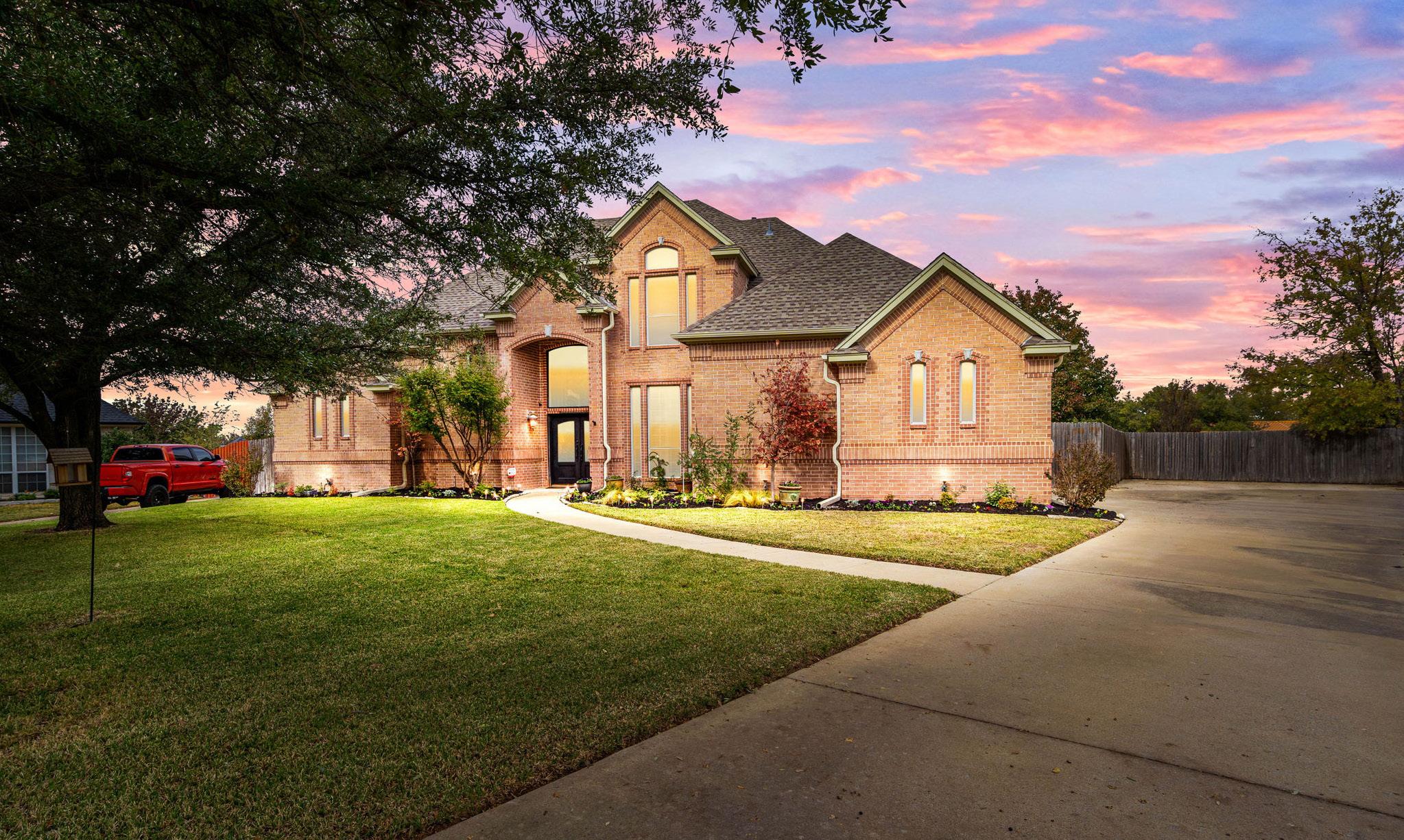 Stunning custom home in the sought after Highland Addition with water views from the balcony. Beautiful double doors open to an elegant entrance with a view of the formal dining & family room, which features built- ins, hand scraped wood flooring & fireplace. A wall of windows overlooks the large backyard with the in ground diving pool & outdoor kitchen. The gourmet kitchen offers double ovens, a warming drawer, electric cooktop, an island & walk in pantry. A cozy breakfast nook & formal dining room make entertaining easy. The main bedroom & elegant bath are privately located & feature a jetted garden tub, separate shower, double sinks with an abundance of counter space, large walk in closet. Also located on the first level are a bedroom with a full bath and the large laundry room with a sink, cabinets and more. The second level offers a game room, 2 large bedrooms, sharing the third full bath with a jack & jill setup. Side entry garage, sprinkler system & more! Roof was replaced in 2022! 817.233.1409