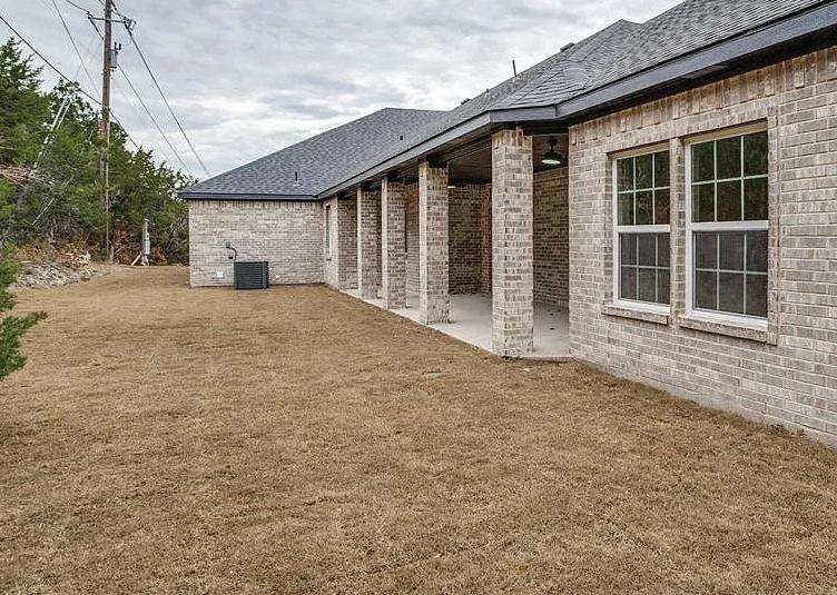 Happy New Year, welcome to your beautifully updated one story home boasting an extra two car garage and workshop. This gorgeous home located on a one acre corner approximately 45 min from LAKE TEXOMA AND LAKE RAY ROBERTS features a Fully renovated Kitchen with all cabinetry, SS appliances, Granite counters, oversized drawers, as well as two spice drawers on either side of range. Other updates, Wood floors, Granite and new cabinetry in baths, All Windows replaced in 2020 per owner and more. Fully covered outdoor living area with wall mount and c-fans. The Den features four ceiling speakers, sub woofer, and receiver, cathedral and beamed ceiling with fan, Brick wood burning fireplace has raised wall to wall hearth, built-in circulation fans, and sconce lights. Roof is 4 years old per owner. Fall in LOVE with the brick on slab extra two car garage to make 4 garage spaces complete with a set of two drive thru garage doors and work bench. SS fridge and SS front load washer and negotiable.